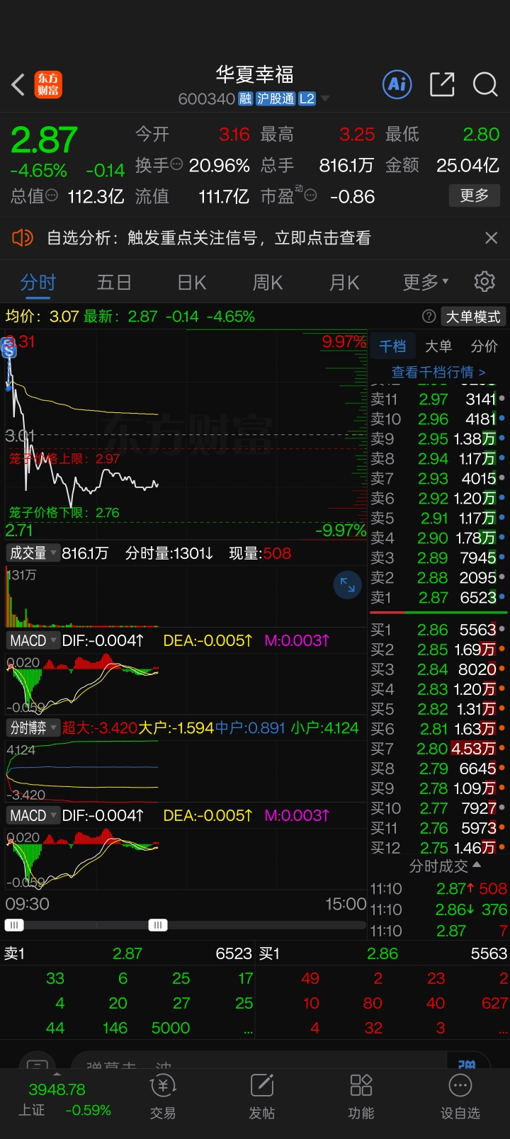 早上开盘清仓了,挂2.78买不到加仓利欧股份