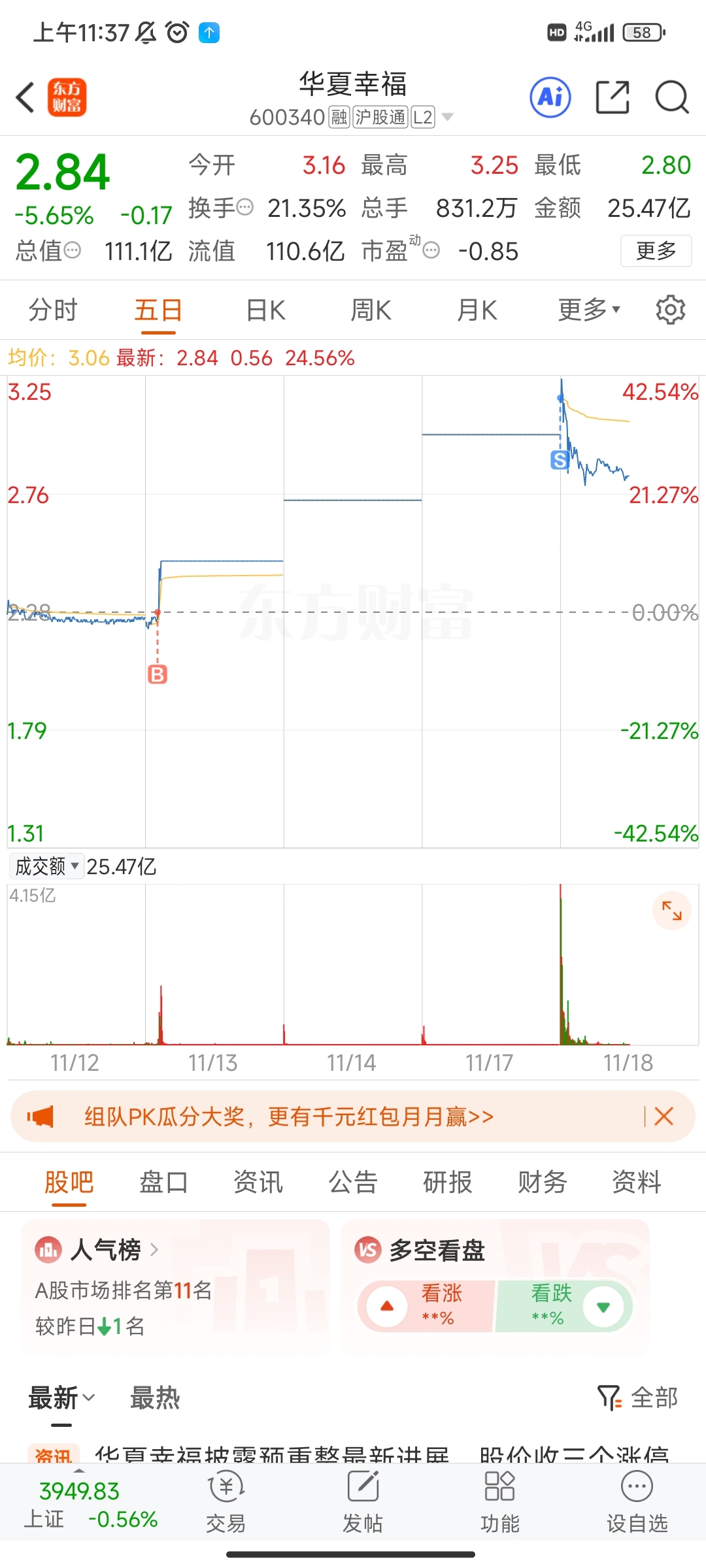 $华夏幸福(SH600340)$ 感谢主力!
