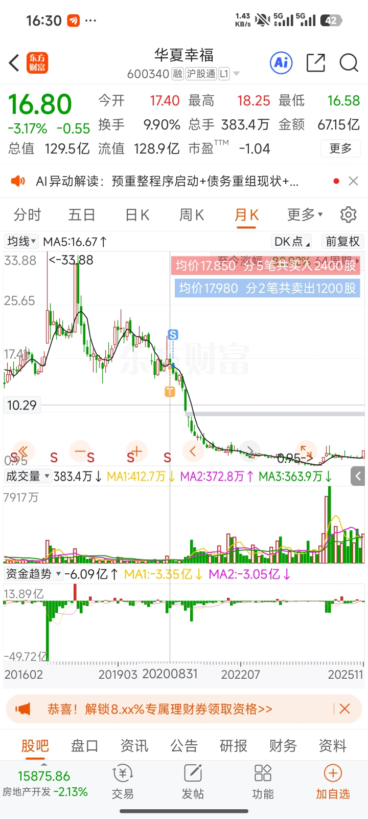 $华夏幸福(SH600340)$ 亏死了,哥们