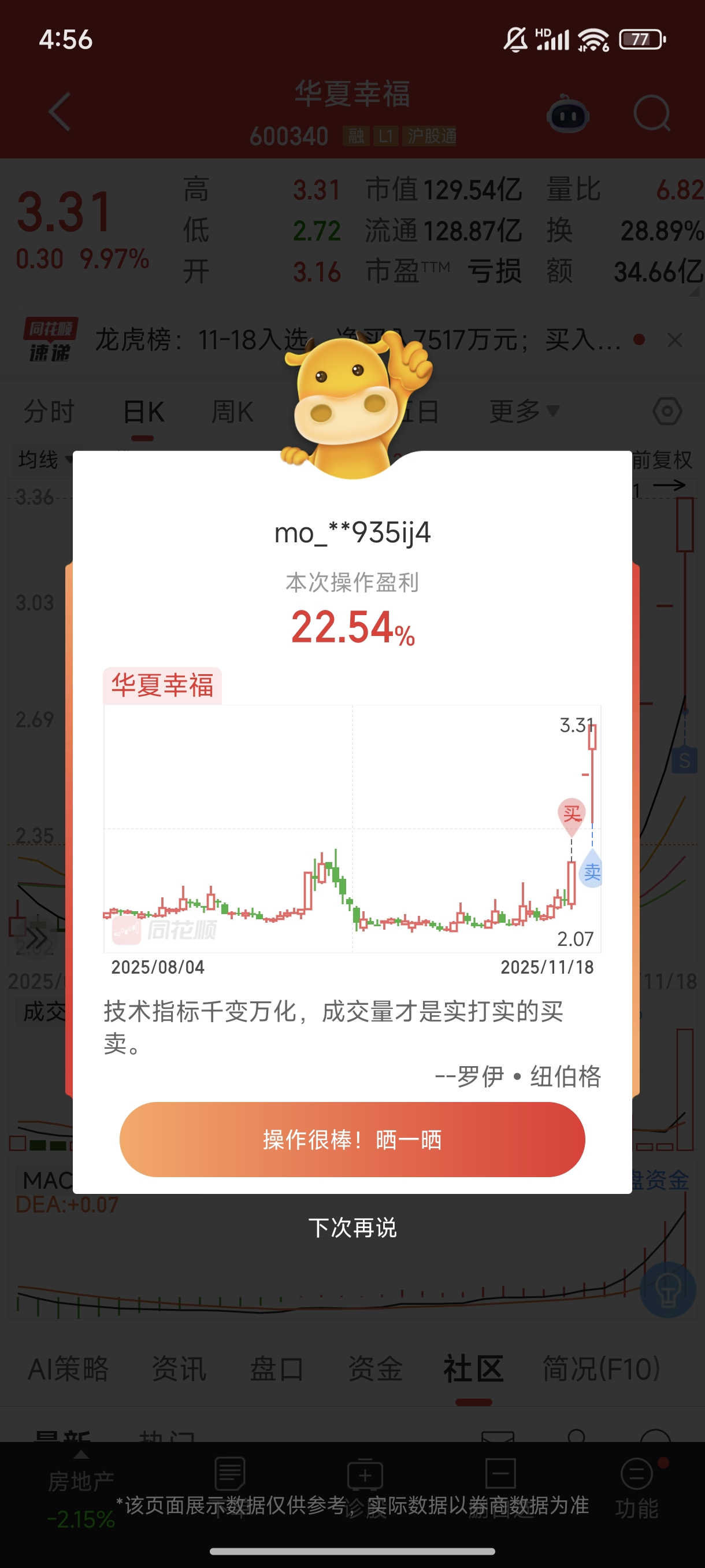 $华夏幸福(SH600340)$ 水下4个点出来了,气死我了本来能赚40%的
