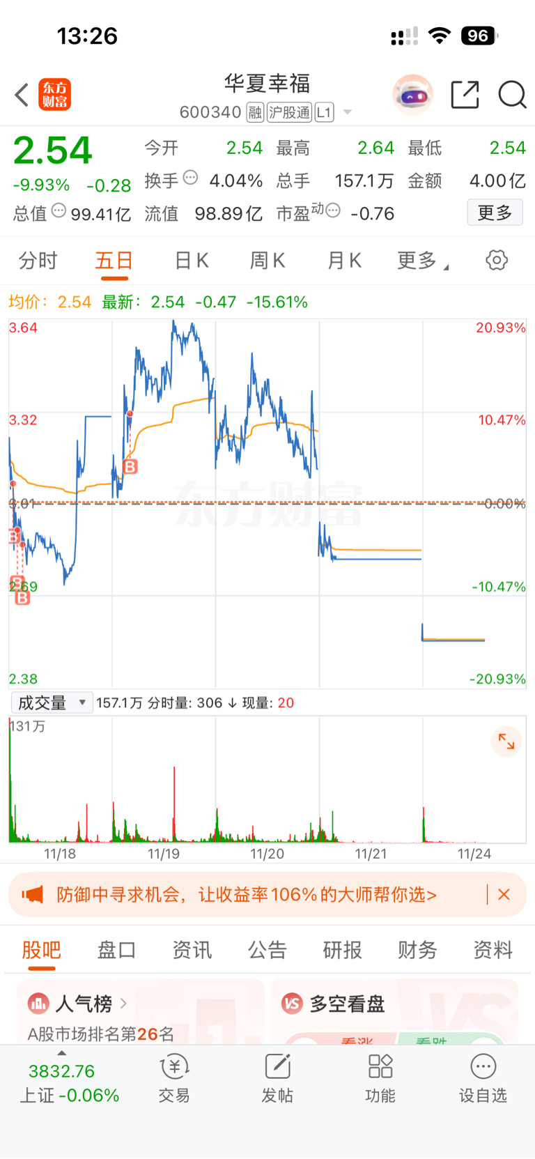 $华夏幸福(SH600340)$ 怕什么,兄弟们。