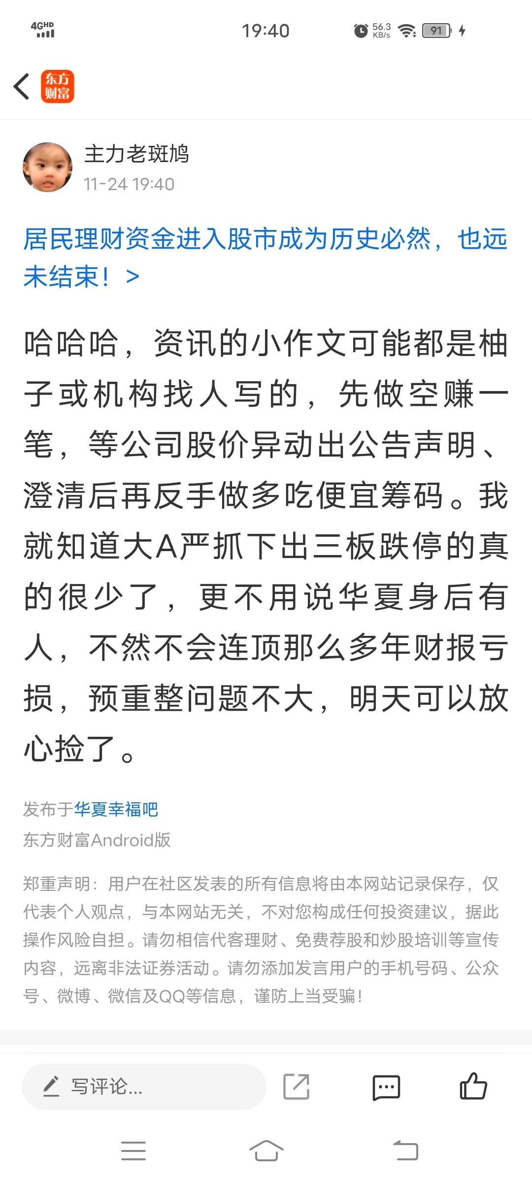 温馨提示: 1.根据《证券法》规定,禁止编造、传播虚假信息或者误导性信息,扰乱证券市场;2.用户在本社区发表的所有资料、言论等仅代表个人观点,与本网站立场无关,不对您构成任何投资建议。用户应基于自己的独立判断,自行决定证券投资并承担相应风险。《东方财富社区管理规定》