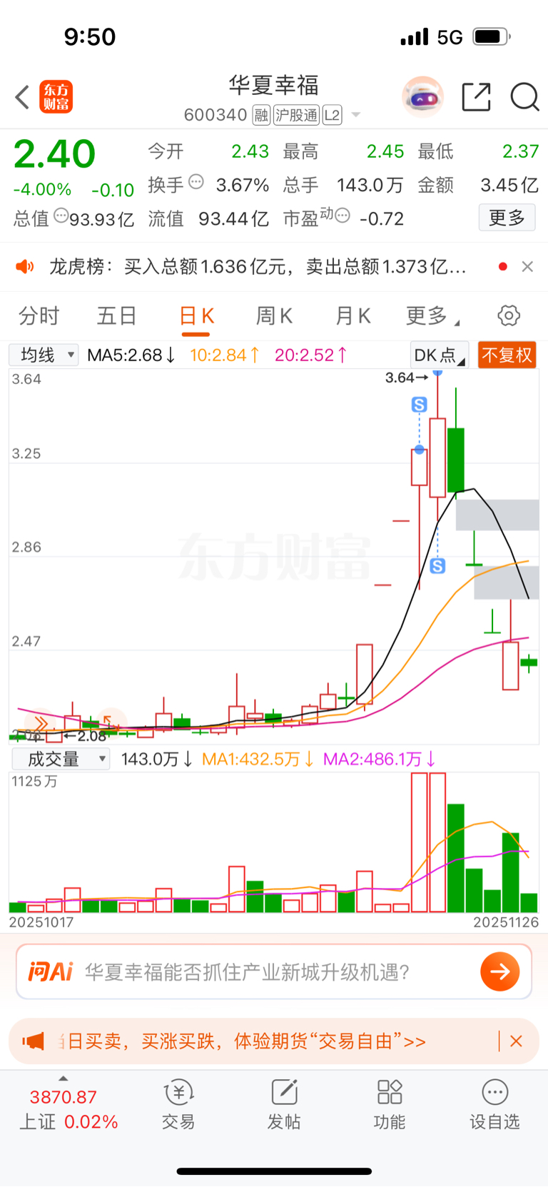 玩一年华夏幸福了,特别了解他的操盘方式,套住的也不要慌,这个位置没必要割了。
