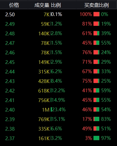 2.43到2.50这个买卖区间,标准的主力行为,散户是拉不上去的,买入125万手