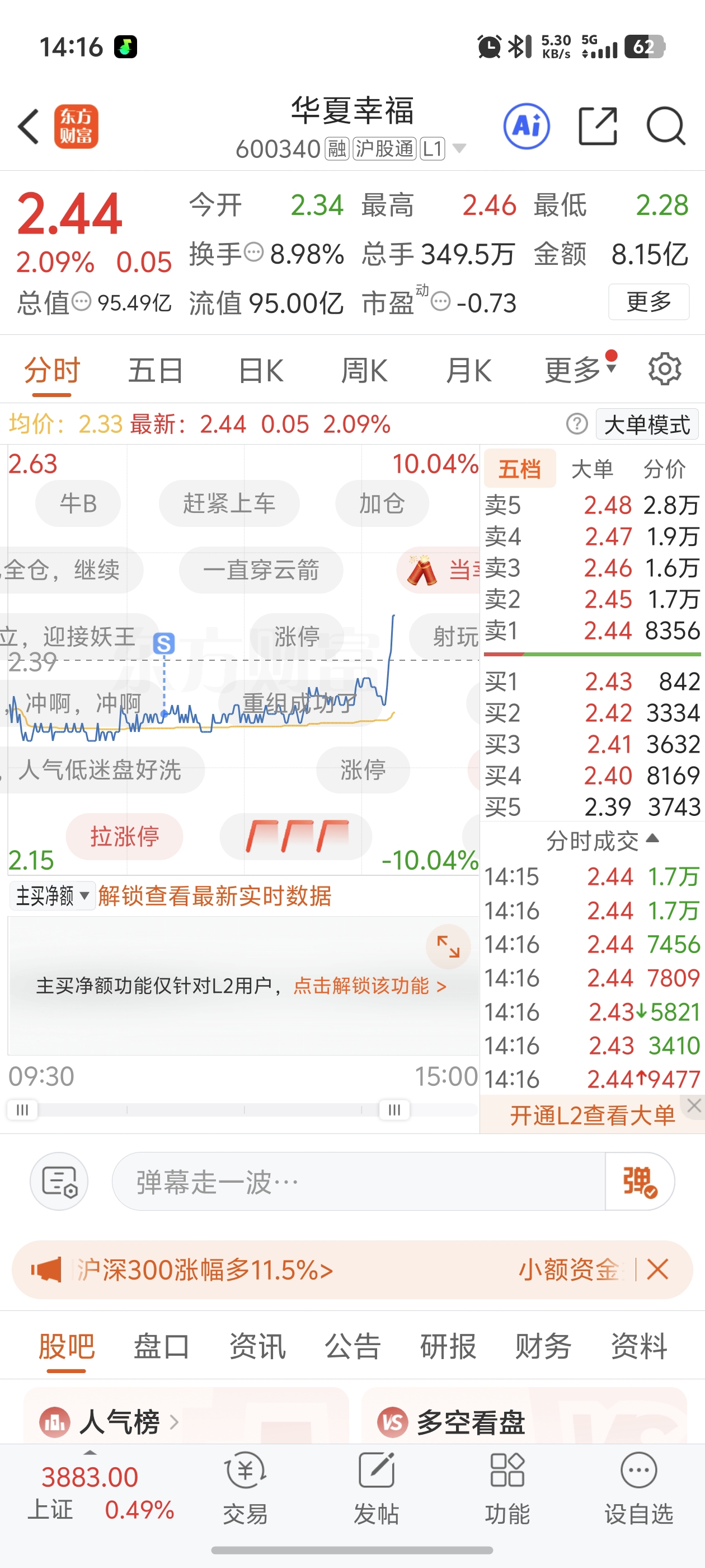 $华夏幸福(SH600340)$ 我今早刚割25个点你给我来这个
