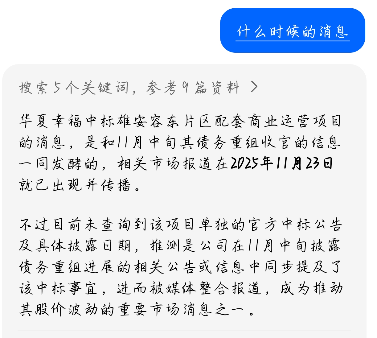 $华夏幸福(SH600340)$ 问豆包的,这个消息真吗,有用吗