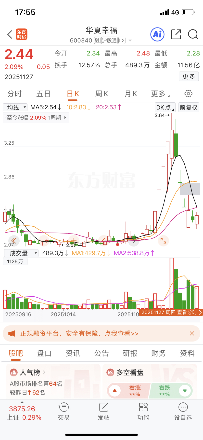 $华夏幸福(SH600340)$ 我就不下车了,请主力务必带我体验一下坐过山车的刺激,11-13号当时是什么感觉,这K线图坐过山车,那太刺激了