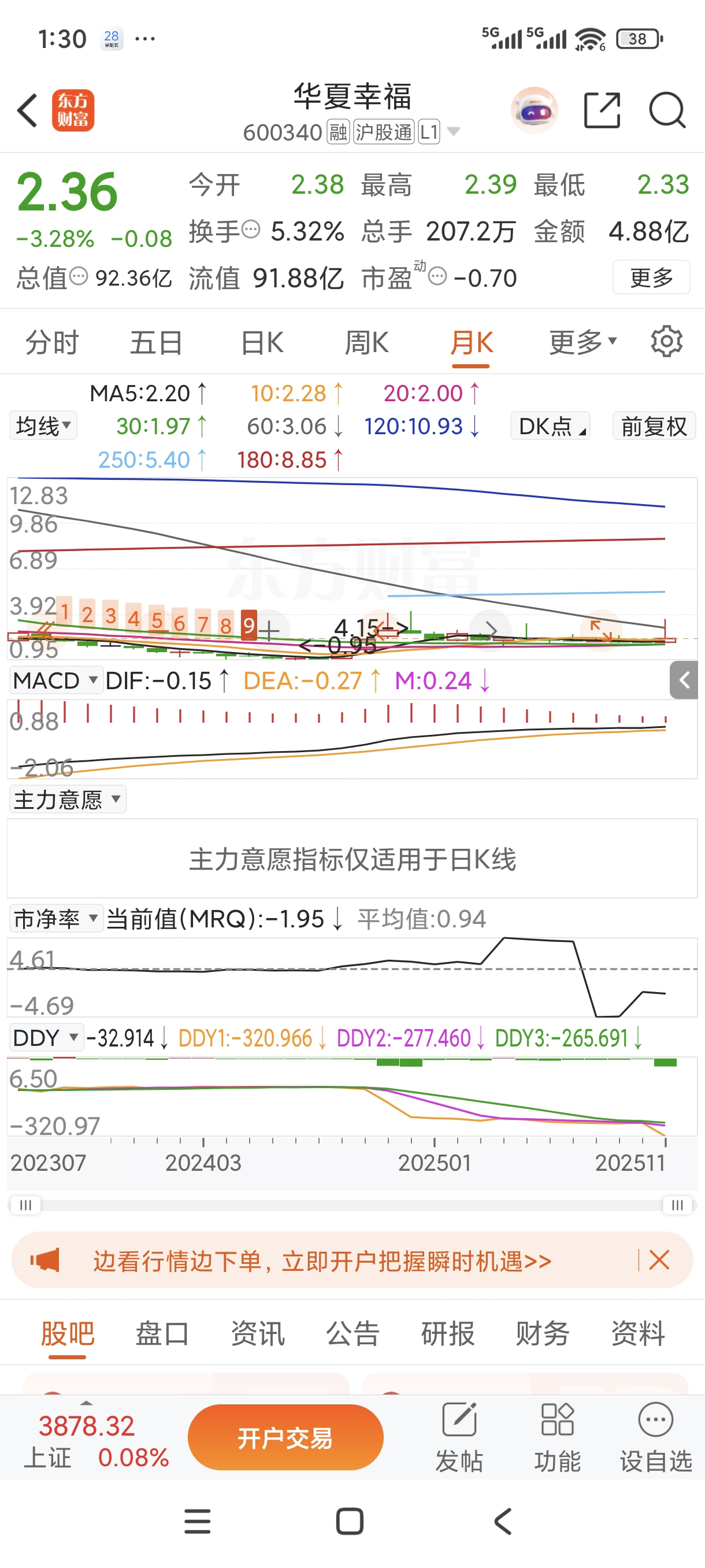 $华夏幸福(SH600340)$ 这个月K可以参考日K走势不?反正日K这种走势不妙