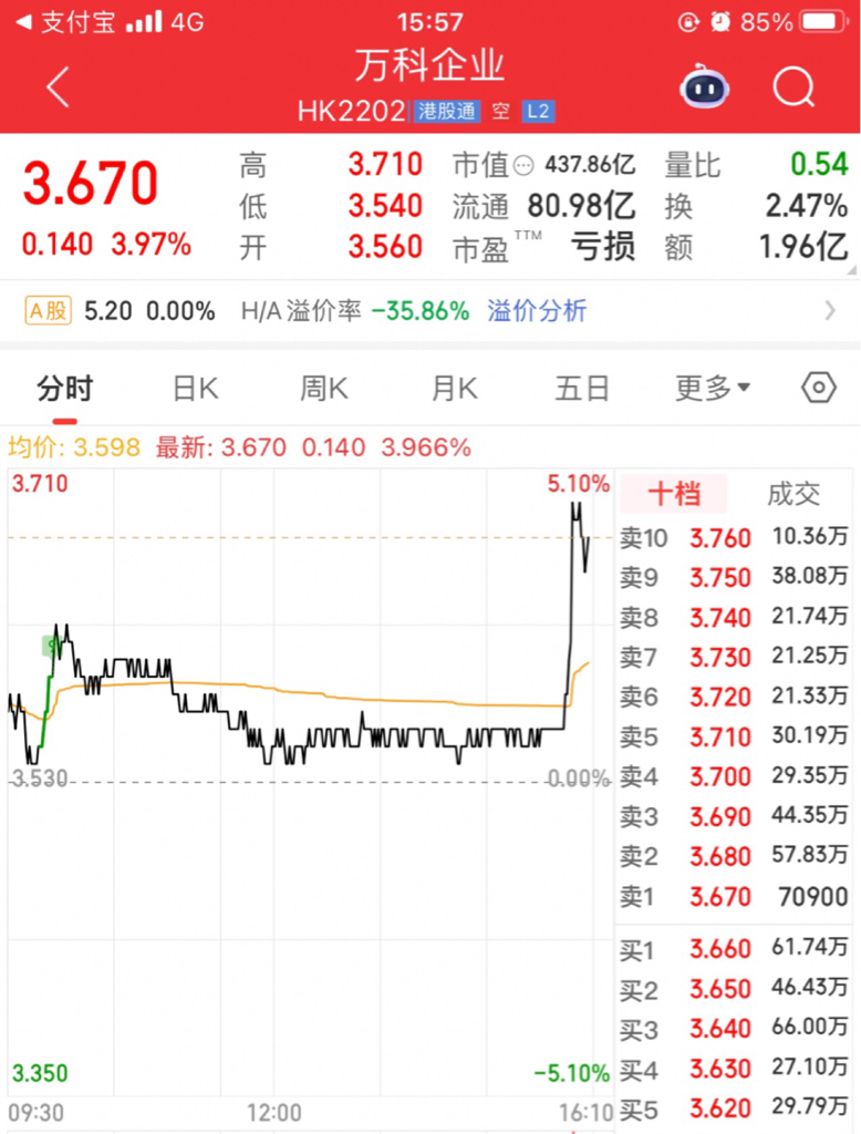 $华夏幸福(SH600340)$ 港股万科尾盘拉涨,明天地产继续冲