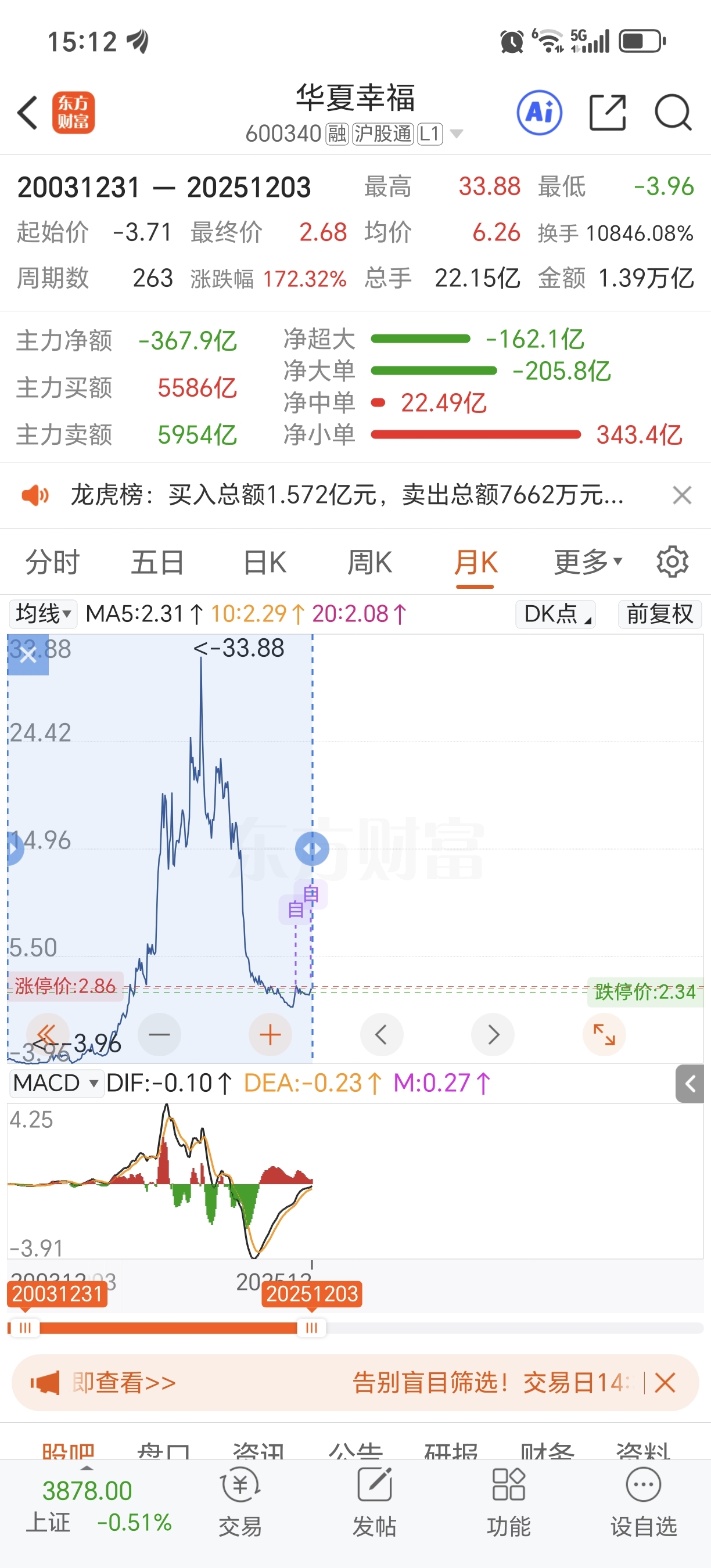 $华夏幸福(SH600340)$ 开盘到现在03年-25年。主力在这股票赚了367个亿