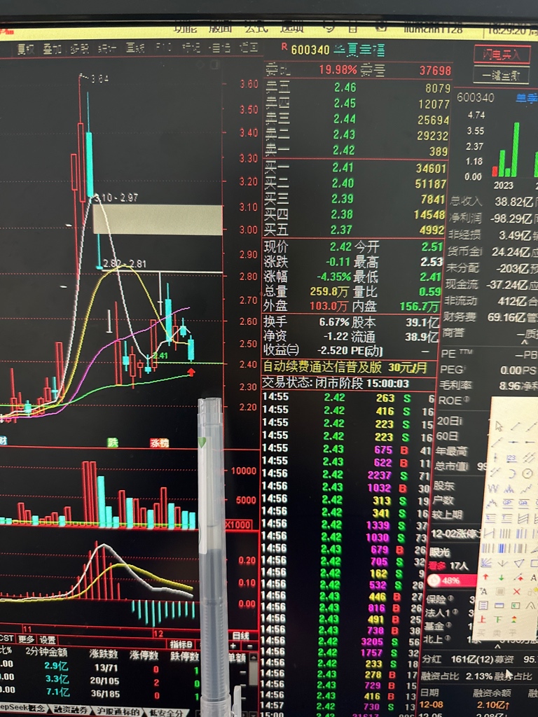 $华夏幸福(SH600340)$ 回到主力成本2.41附近了,今天是上车点,短期压力3.10-2.97缺口处