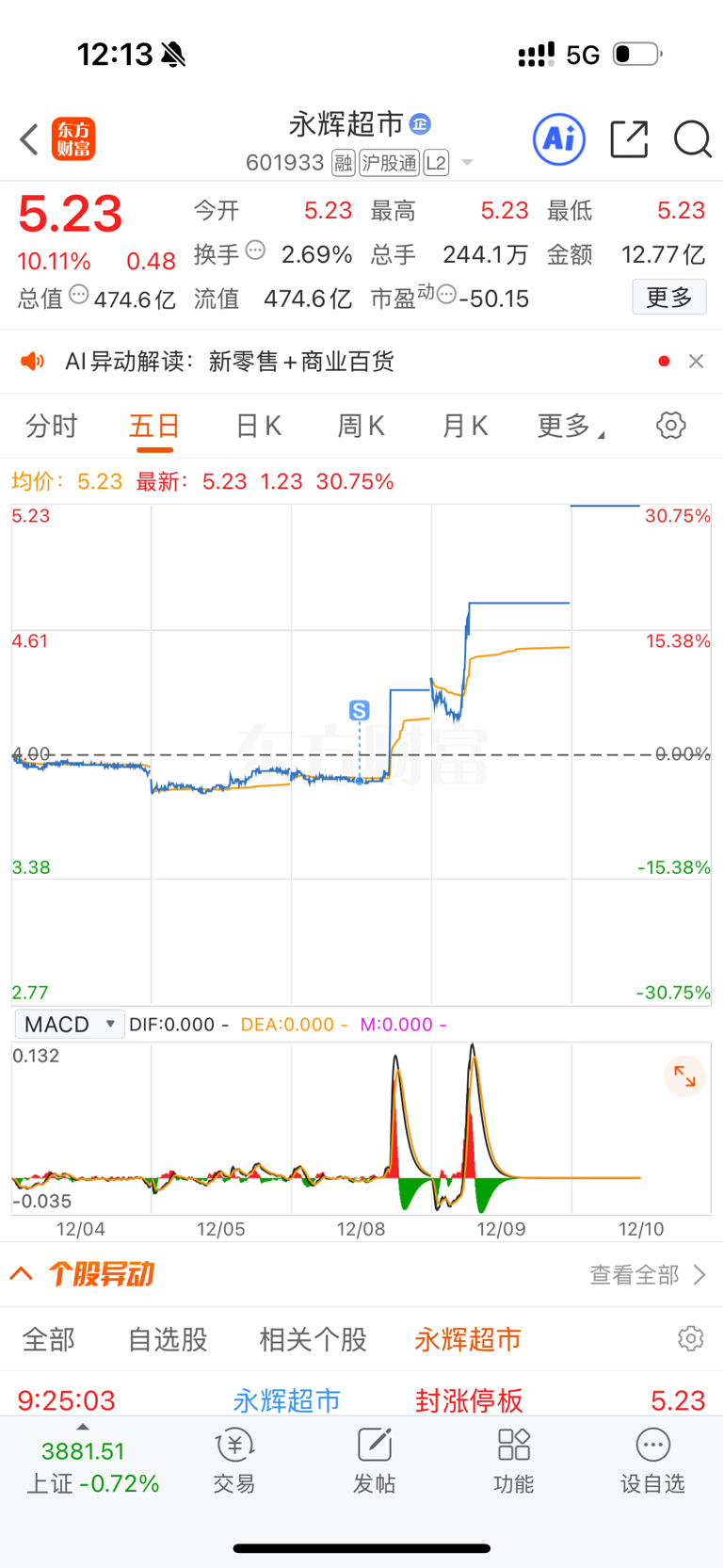 永辉卖飞了进了华夏希望明天再给我个板让我好受点