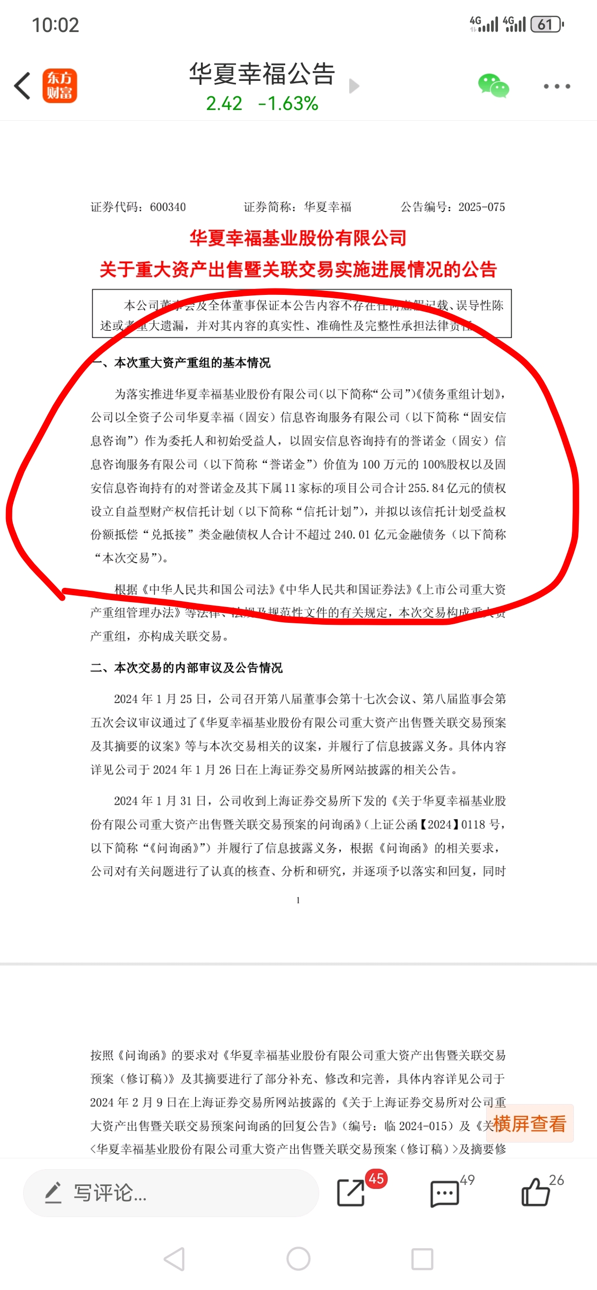 $华夏幸福(SH600340)$