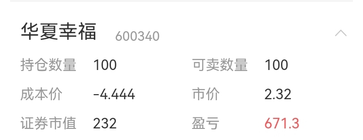 $华夏幸福(SH600340)$ 今天亏10块,不幸福了