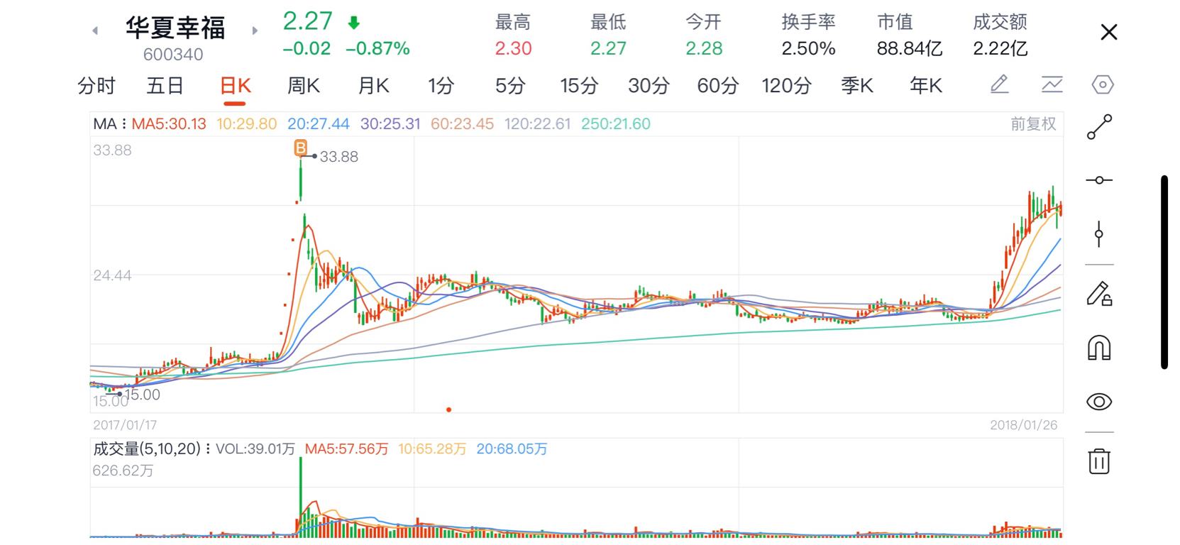 $华夏幸福(SH600340)$ 什么时候能回本啊,2017年4月12日最高点买的,套了8年多了
