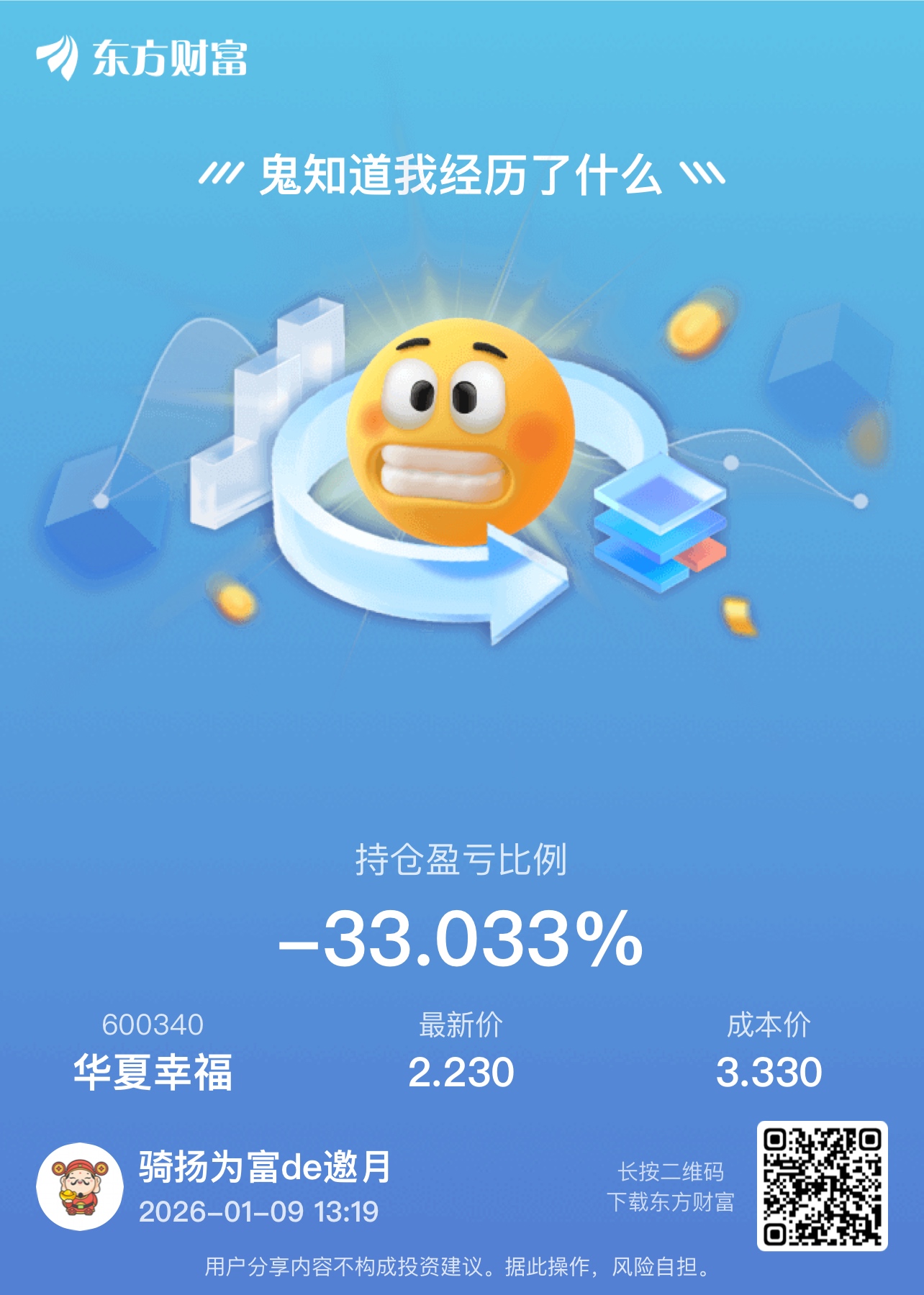 温馨提示: 1.根据《证券法》规定,禁止编造、传播虚假信息或者误导性信息,扰乱证券市场;2.用户在本社区发表的所有资料、言论等仅代表个人观点,与本网站立场无关,不对您构成任何投资建议。用户应基于自己的独立判断,自行决定证券投资并承担相应风险。《东方财富社区管理规定》