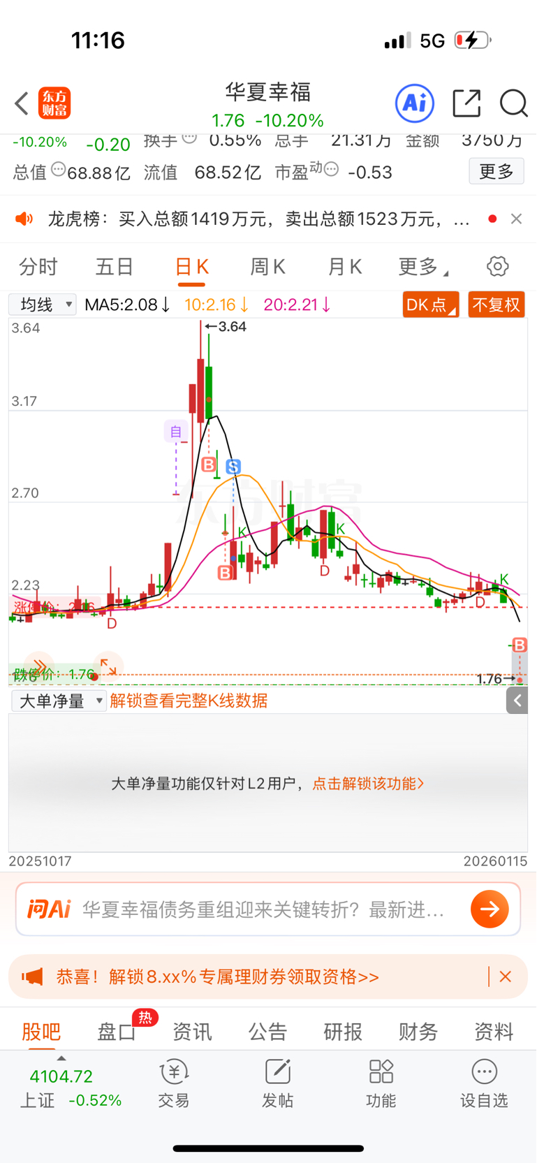 温馨提示: 1.根据《证券法》规定,禁止编造、传播虚假信息或者误导性信息,扰乱证券市场;2.用户在本社区发表的所有资料、言论等仅代表个人观点,与本网站立场无关,不对您构成任何投资建议。用户应基于自己的独立判断,自行决定证券投资并承担相应风险。《东方财富社区管理规定》