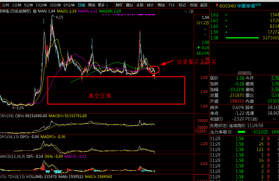 理智与经验让我前天没买华夏幸福,其实当时我看了好久,有买的冲动。红圆圈位置看似很