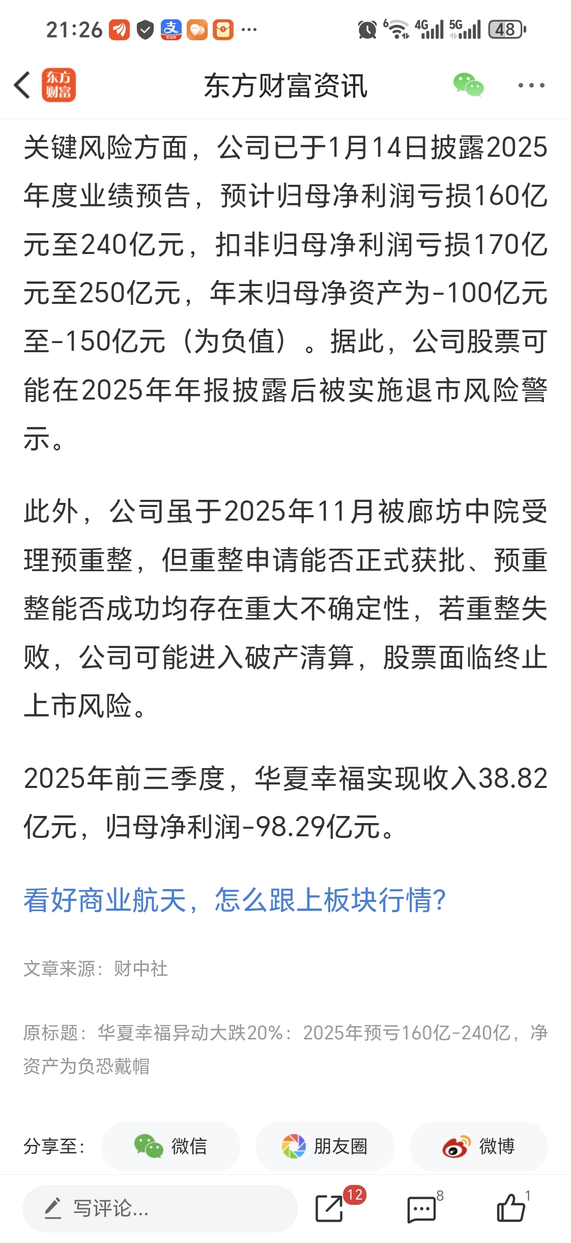 $华夏幸福(SH600340)$ 预计亏损150亿左右,然后今年如果还是亏损几百亿的话明年要想摘帽,至少要补300亿以上的债务!这是什么神仙操作?