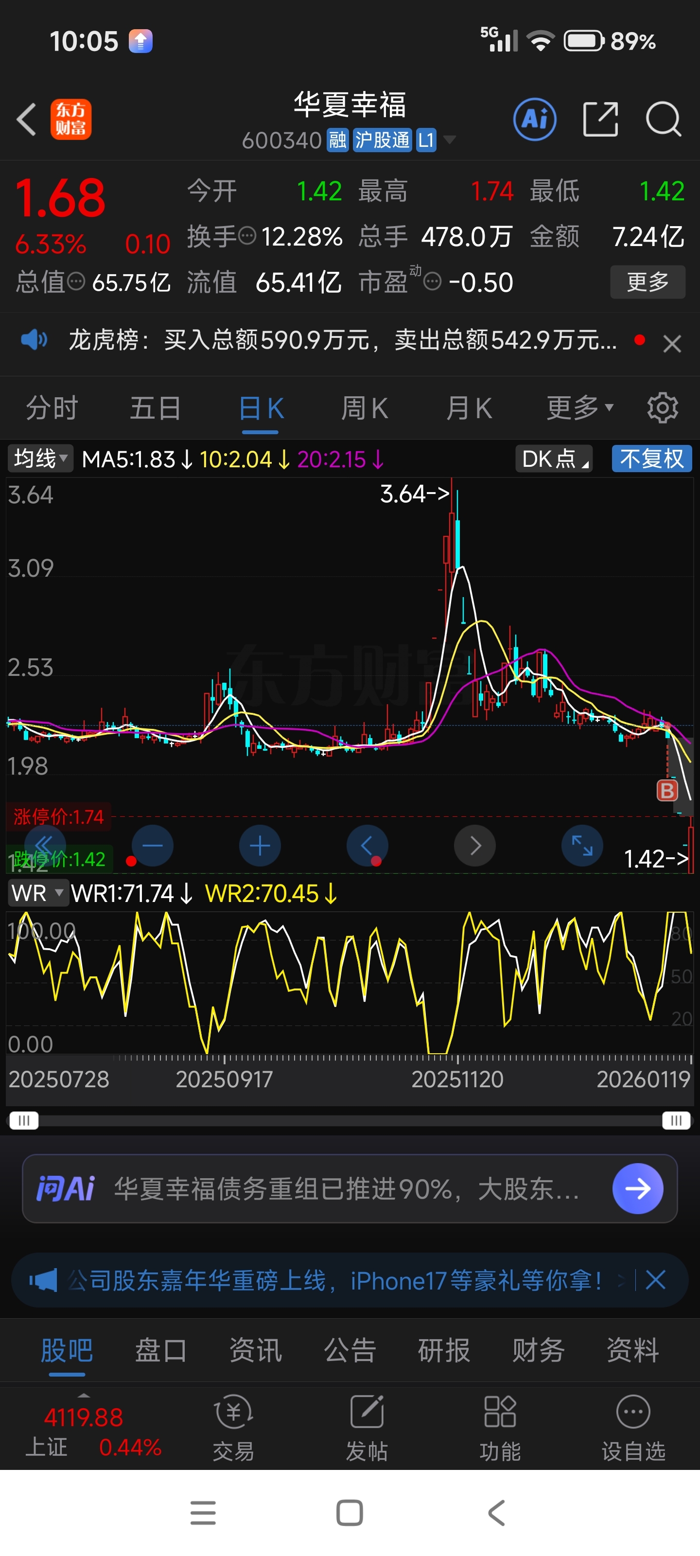 $华夏幸福(SH600340)$ 本人2.25买进去吃了三个跌停亏,我不管他退不退市,前二天卖不出去,我也就不卖了。反正就二万多,亏了认输。