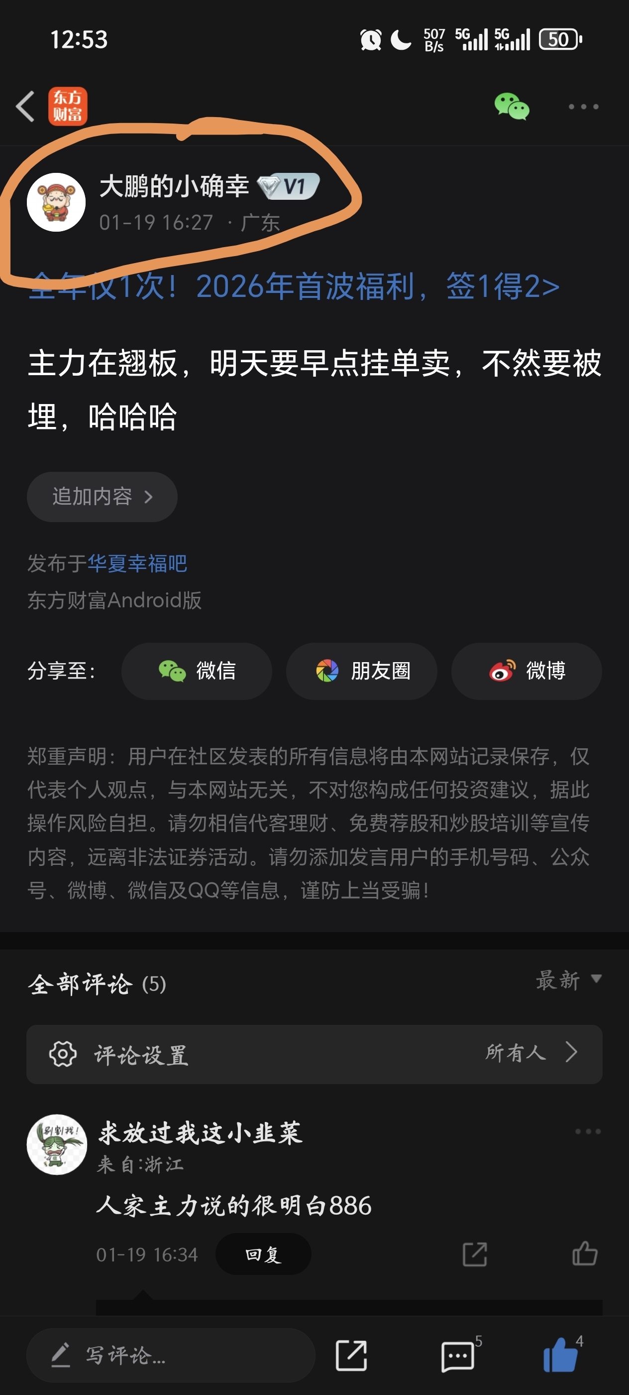 温馨提示: 1.根据《证券法》规定,禁止编造、传播虚假信息或者误导性信息,扰乱证券市场;2.用户在本社区发表的所有资料、言论等仅代表个人观点,与本网站立场无关,不对您构成任何投资建议。用户应基于自己的独立判断,自行决定证券投资并承担相应风险。《东方财富社区管理规定》