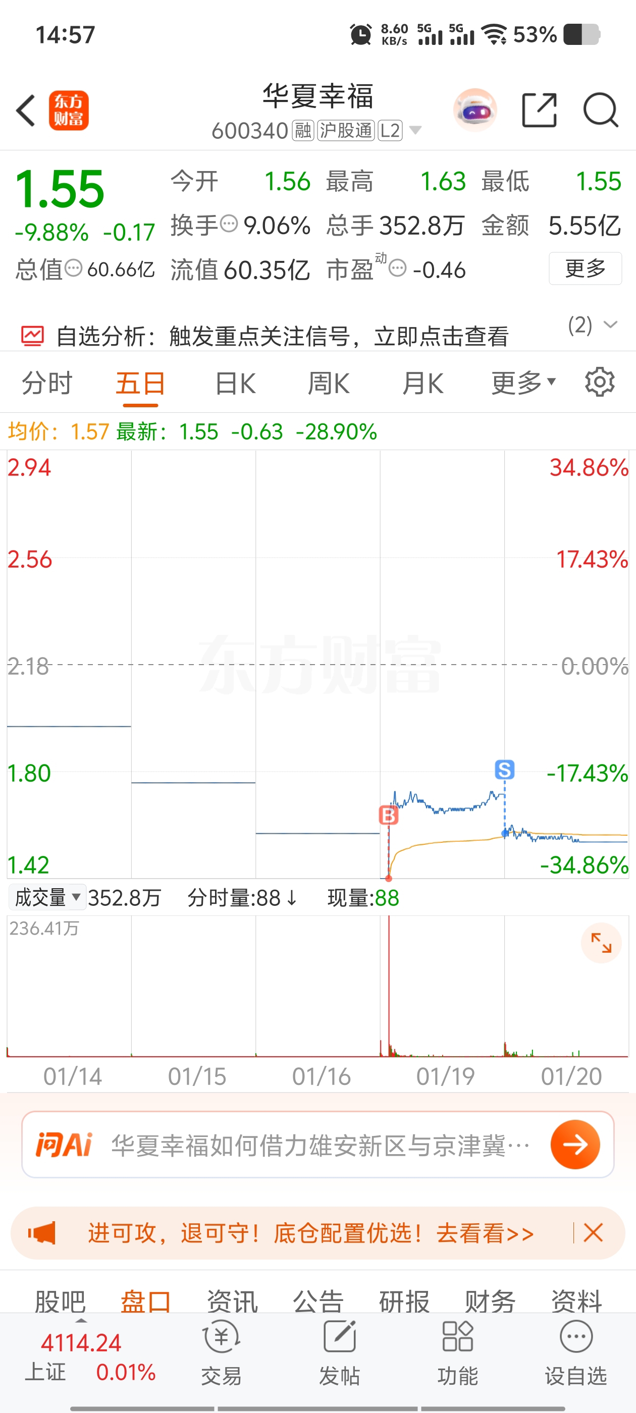 温馨提示: 1.根据《证券法》规定,禁止编造、传播虚假信息或者误导性信息,扰乱证券市场;2.用户在本社区发表的所有资料、言论等仅代表个人观点,与本网站立场无关,不对您构成任何投资建议。用户应基于自己的独立判断,自行决定证券投资并承担相应风险。《东方财富社区管理规定》