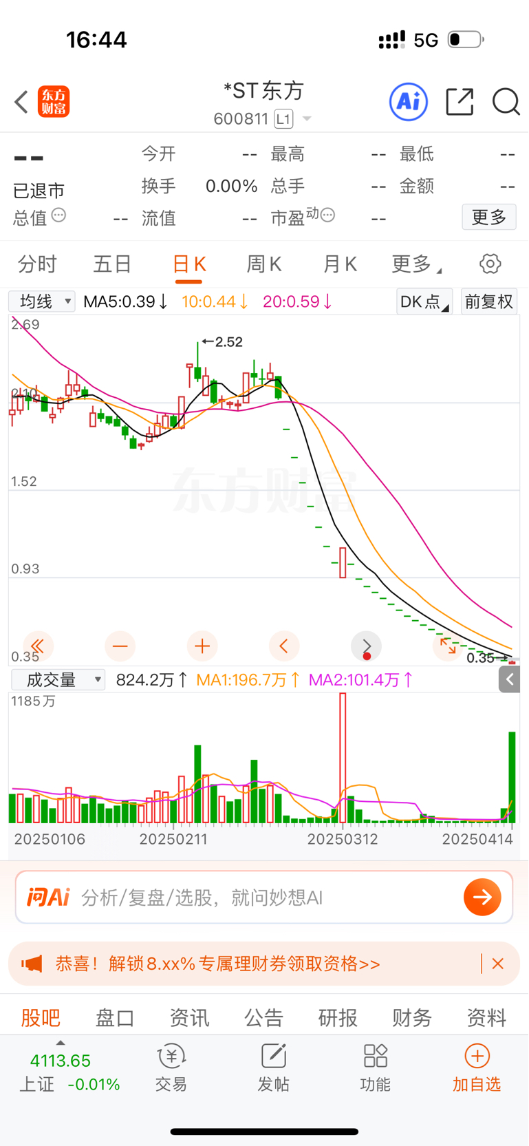 $华夏幸福(SH600340)$ 图形给你们画好了,只要被ST,一绿数板到1块钱地天板后一字板跌到退市