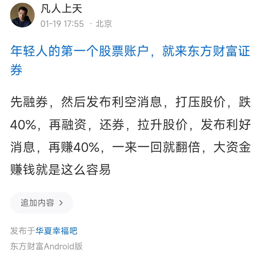 温馨提示: 1.根据《证券法》规定,禁止编造、传播虚假信息或者误导性信息,扰乱证券市场;2.用户在本社区发表的所有资料、言论等仅代表个人观点,与本网站立场无关,不对您构成任何投资建议。用户应基于自己的独立判断,自行决定证券投资并承担相应风险。《东方财富社区管理规定》