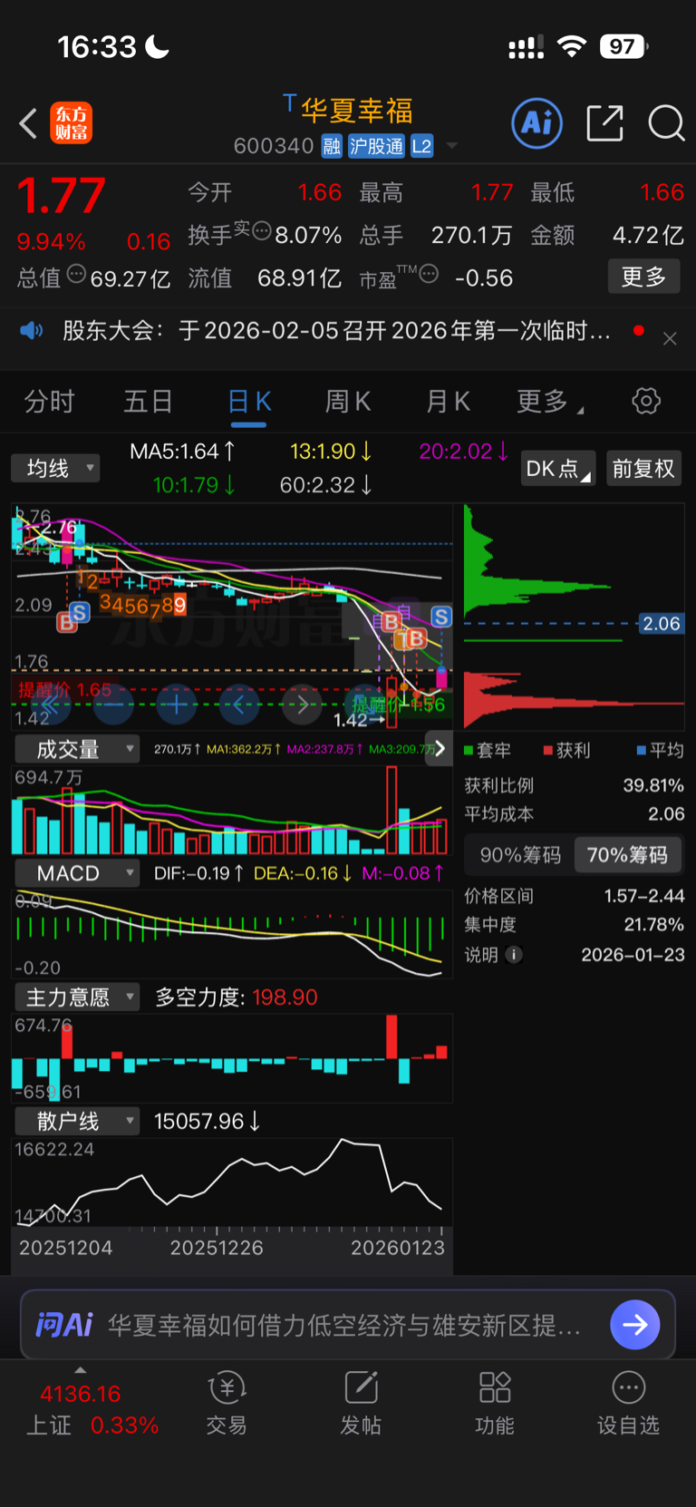 $华夏幸福(SH600340)$ 跟着主力走 赚点就跑