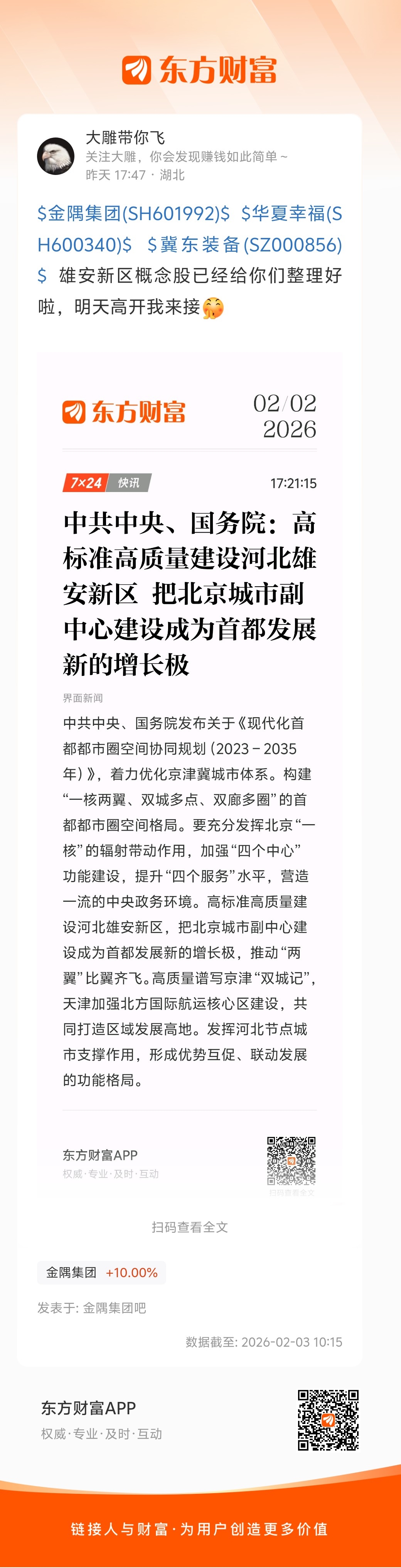 $华夏幸福(SH600340)$ $冀东装备(SZ000856)$ $金隅集团(SH601992)$ 昨天5.47我整理了雄安新区利好,一堆人喷我接盘侠,今天3个都涨停了!黑子说话!!!难道这不配你们点个关注?