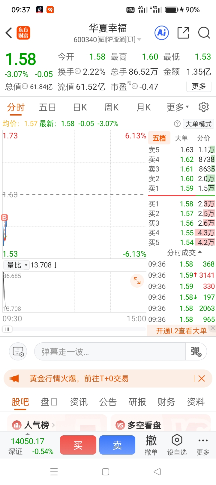 $华夏幸福(SH600340)$ 1.55进了