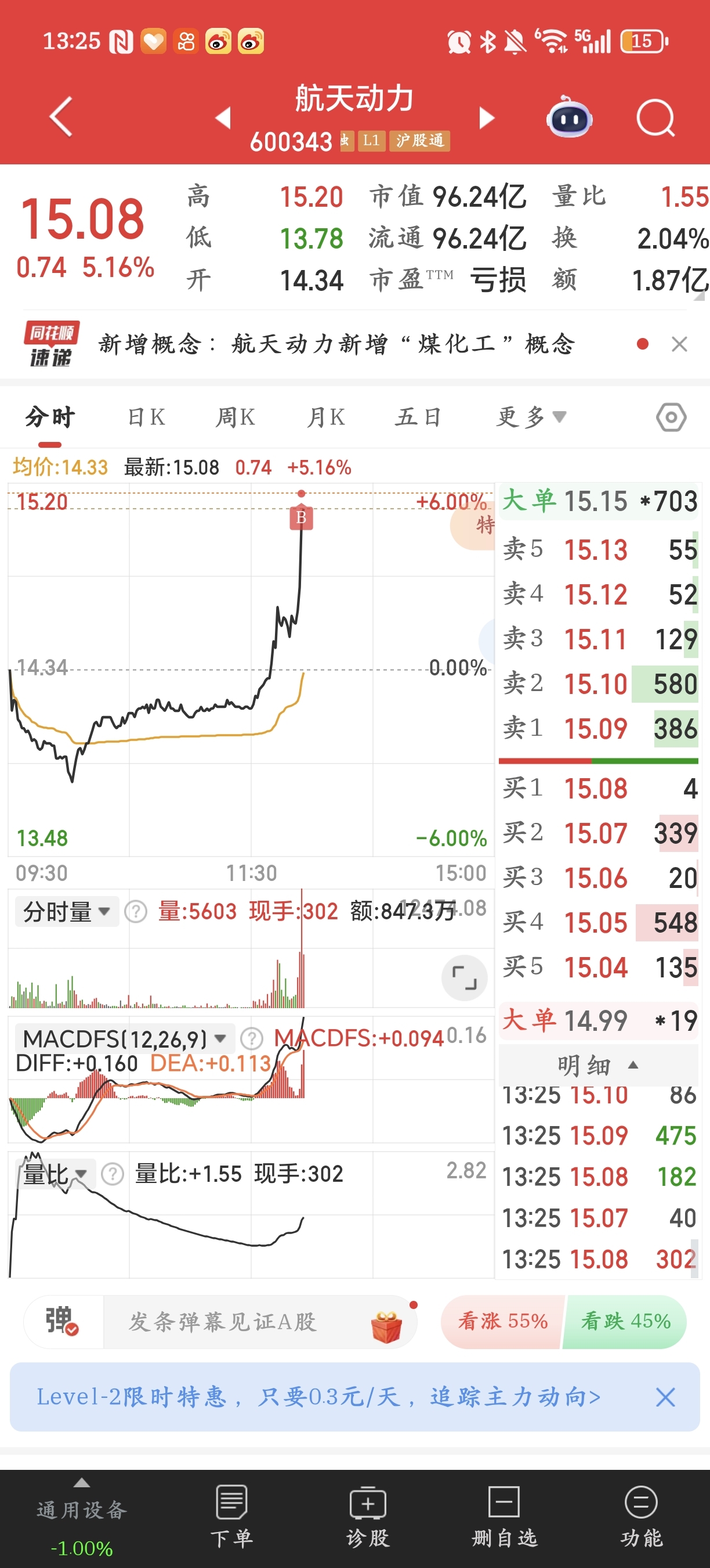 $航天动力(SH600343)$ 哦豁,吃面