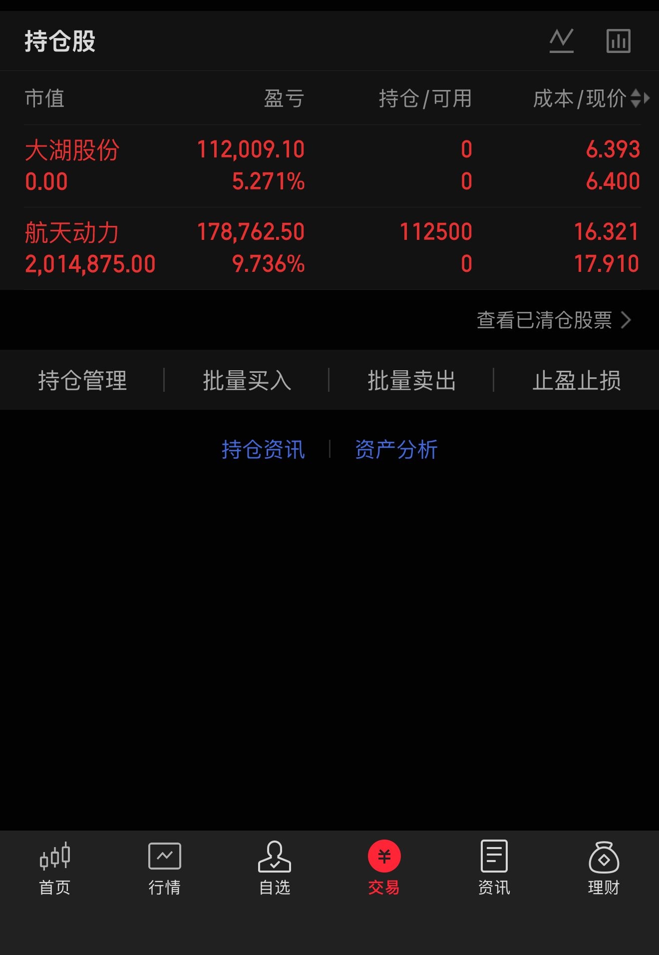 今天又是大家想大干一场的时候,结果,今天大盘再次上演高开低走的戏码,开盘时红盘如星火燎燃,收盘时横尸遍野。你们说,来一次个股普涨,为何就那么难呢?不过,我们要说的是,到今天为止,两市个股已经连续三天普跌了,这个时候盲目割肉无异于雪上加霜,大家还是静待春回大地吧,今天到此。$航天动力(SH600343)$ #收盘点评#