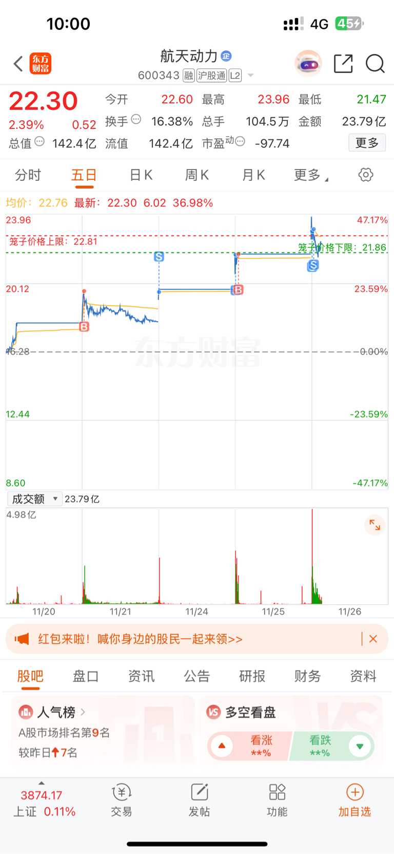 $航天动力(SH600343)$ 没有卖到高点,菜啊