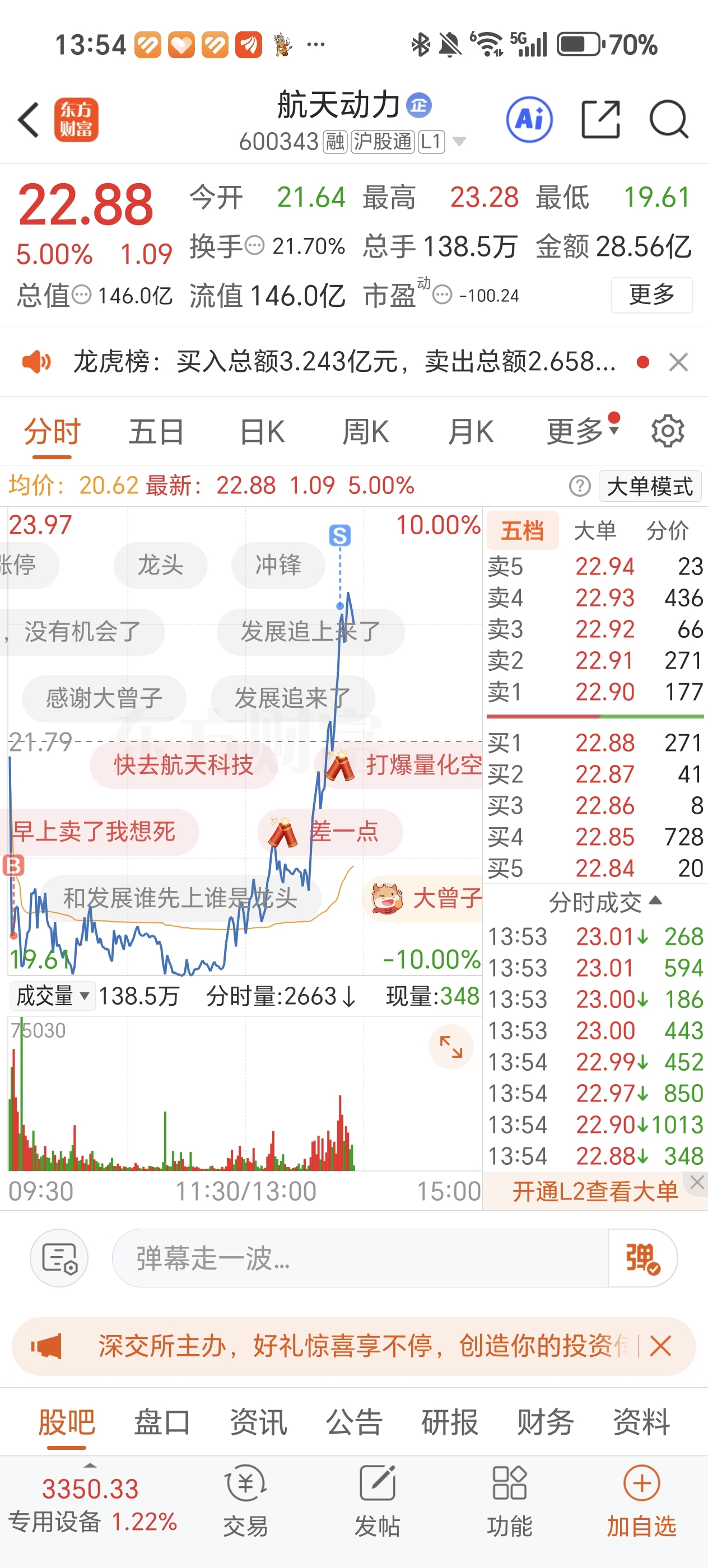 $航天动力(SH600343)$ 不枉一天的蹲守
