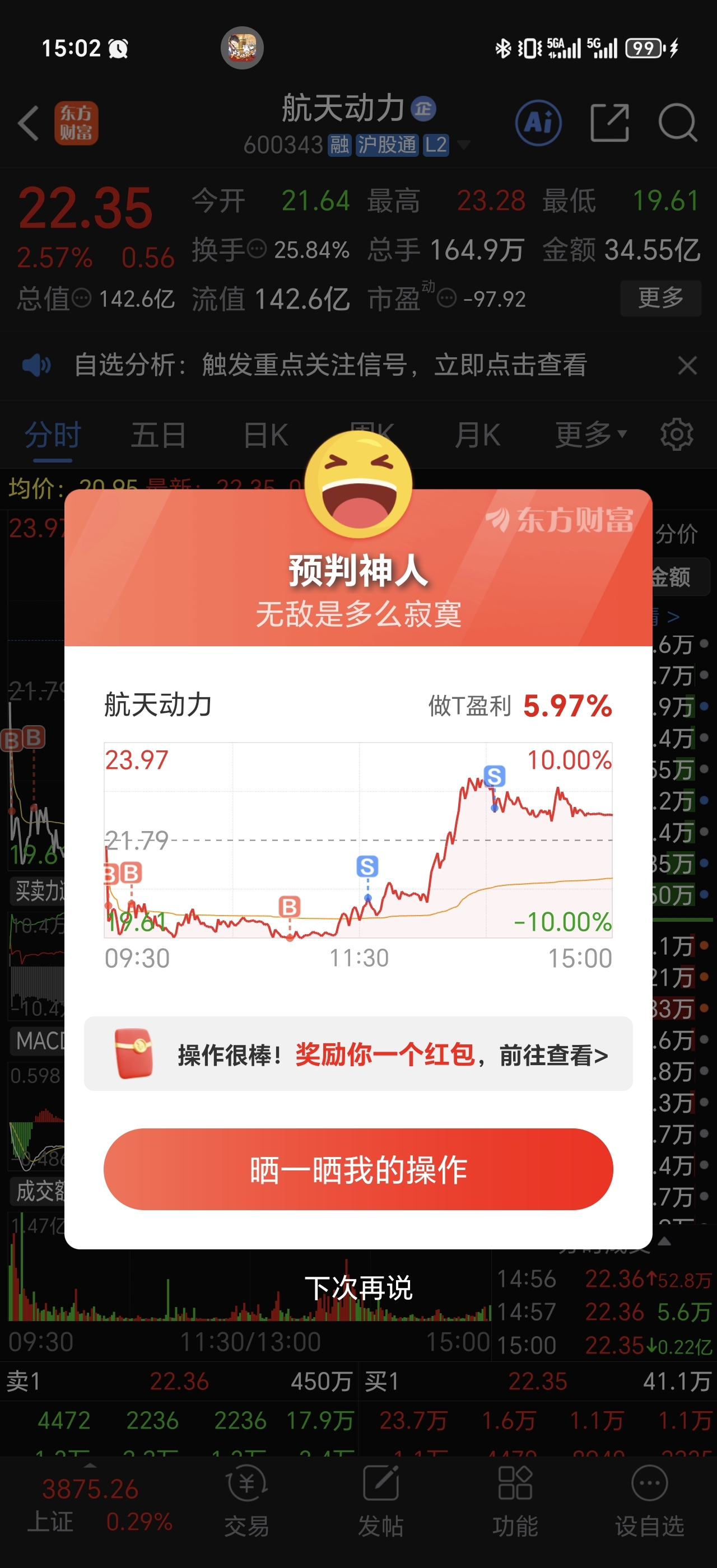 $航天动力(SH600343)$ 跌停加仓还是有用的