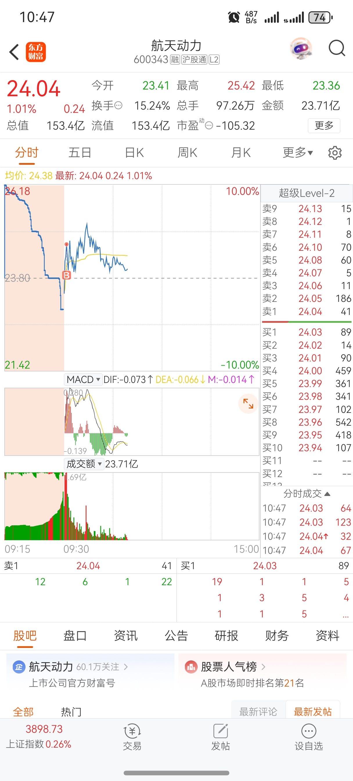 $航天动力(SH600343)$ 瑟瑟发抖,还能回本吗。