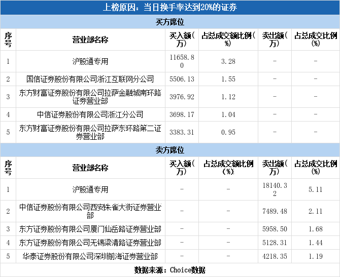 沪股通现身龙虎榜,航天动力换手率达23.10%(12-01)