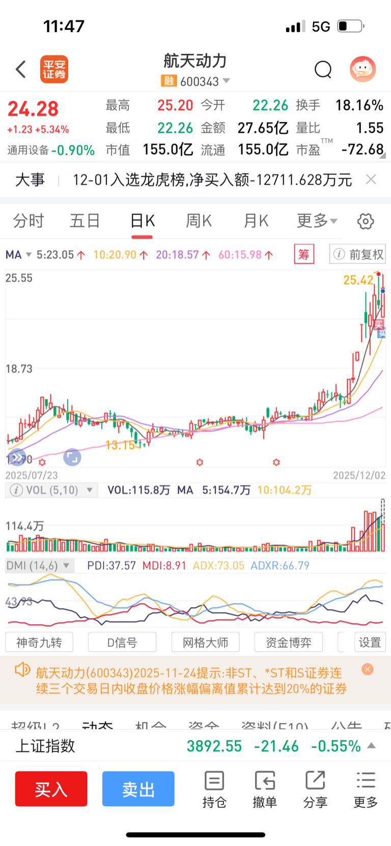 $航天动力(SH600343)$ 卖的不好,但无限感恩少亏出来。去了联建和赛微还行