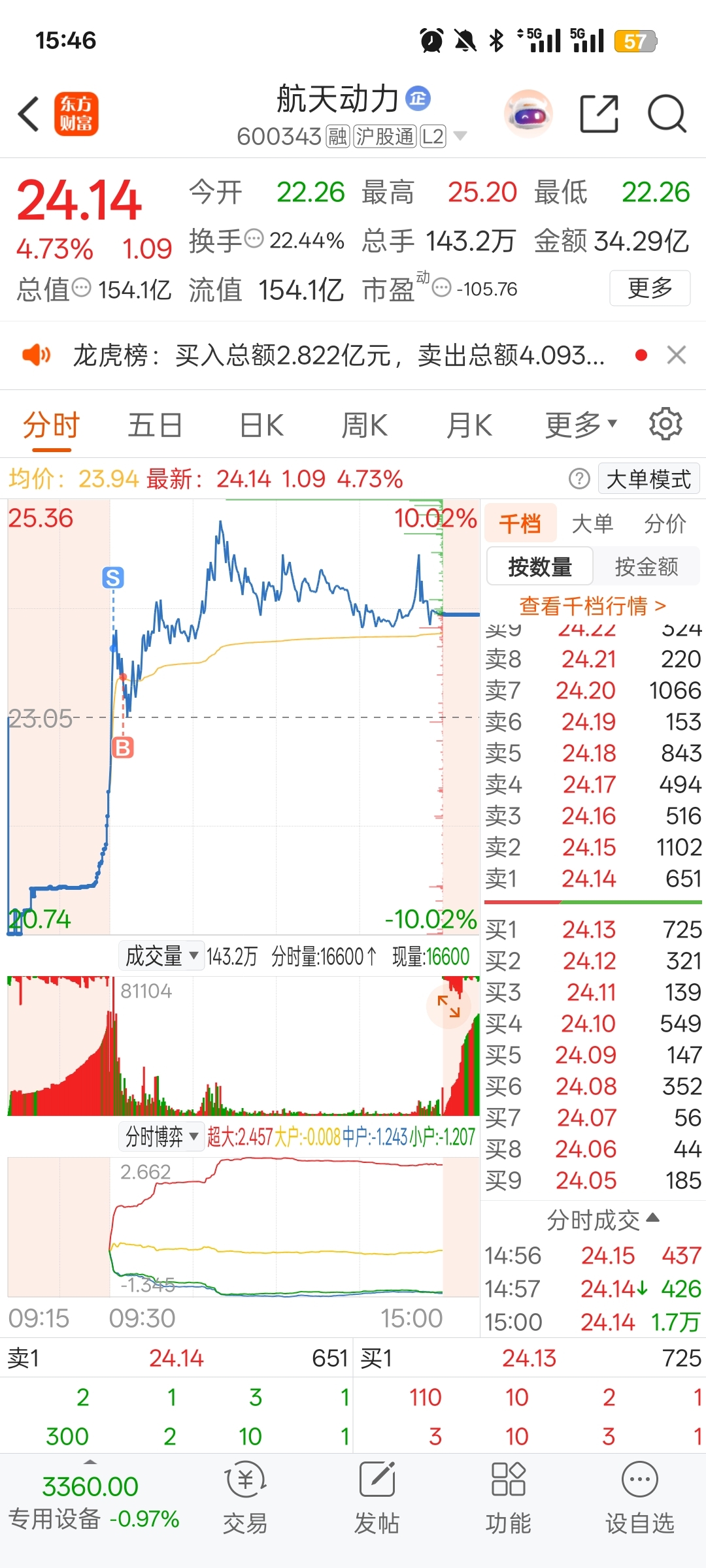 $航天动力(SH600343)$ 看不懂啊,本来今天清仓的,早盘一看很强。你说它强吧它每天冲高回落且低开,你说弱吧它每天又给肉吃。#复盘记录#