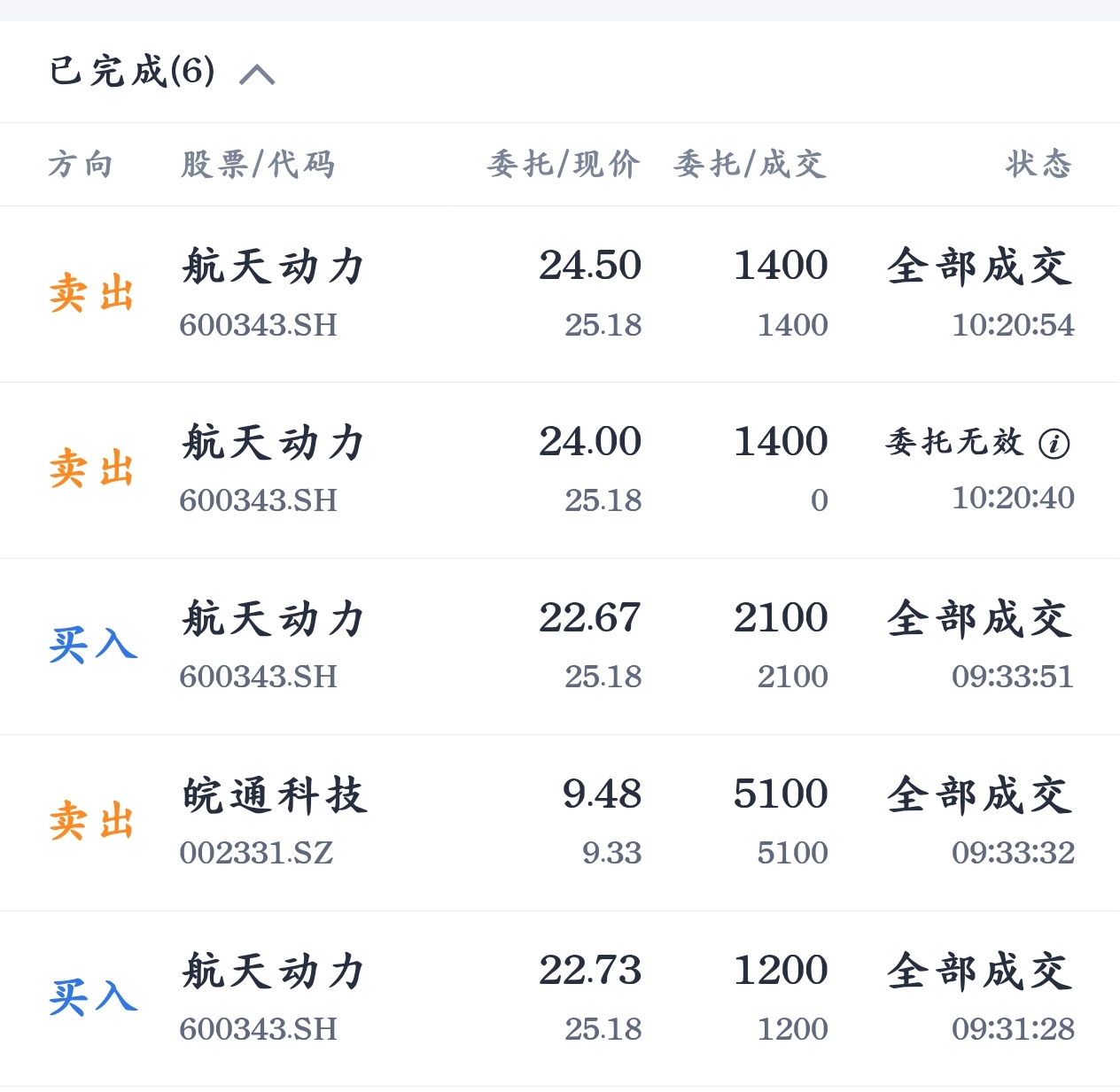 $航天动力(SH600343)$ #实盘记录# 昨天卖了航天发展,上午五成仓进了航天动力,今天早盘吃了碗大面,立马割了其他的票。开盘2成仓3成仓水下加仓航天动力。抱着它他今天肯定能卡位雷科发展。活该我赚钱