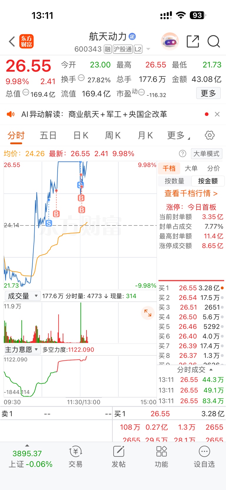 我在涨停板抛了,下来又全部买回,赚了不看好商业航天的钱