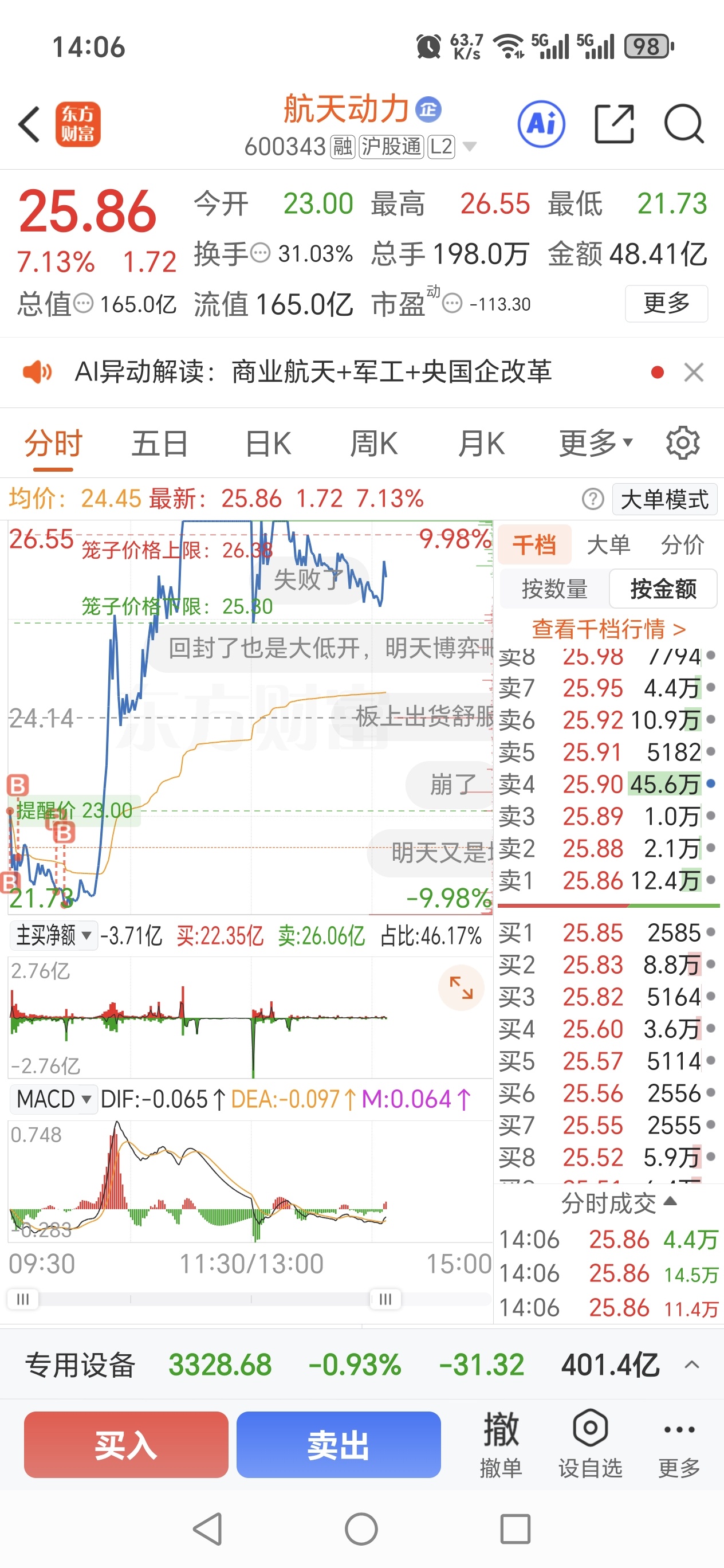 $航天动力(SH600343)$ 主力,别演了,洗不掉我的,因为我根本出不去