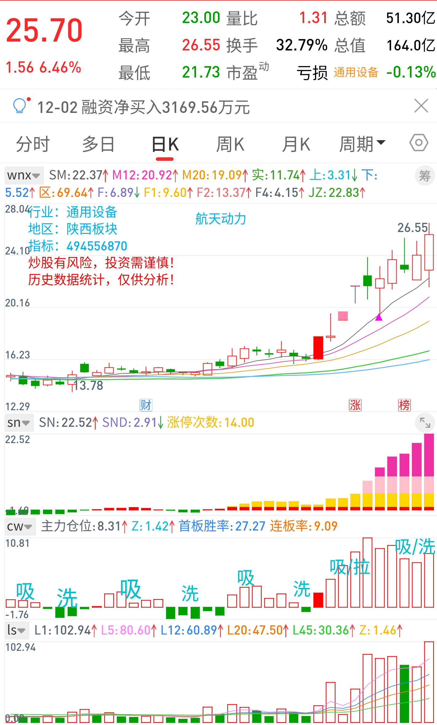 $航天动力(SH600343)$ #复盘记录# #股市怎么看# #收盘点评# #强势机会# 从主图k线上来看,走势很强, 向上触及涨停,向下触及SM生命线。收了带上下影线的大阳线,并且创新高。
