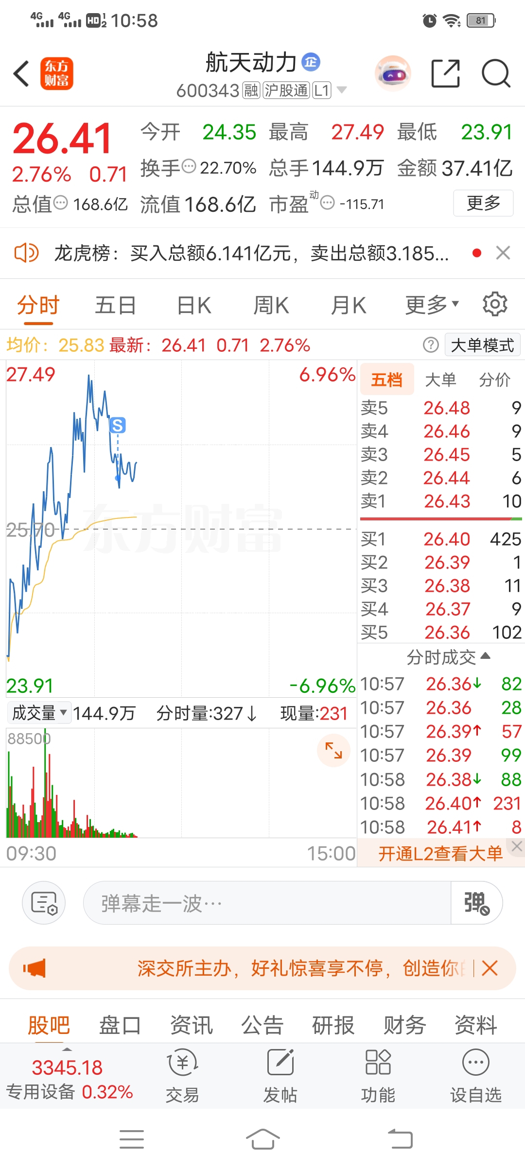$航天动力(SH600343)$ 完了,手痒卖出去了