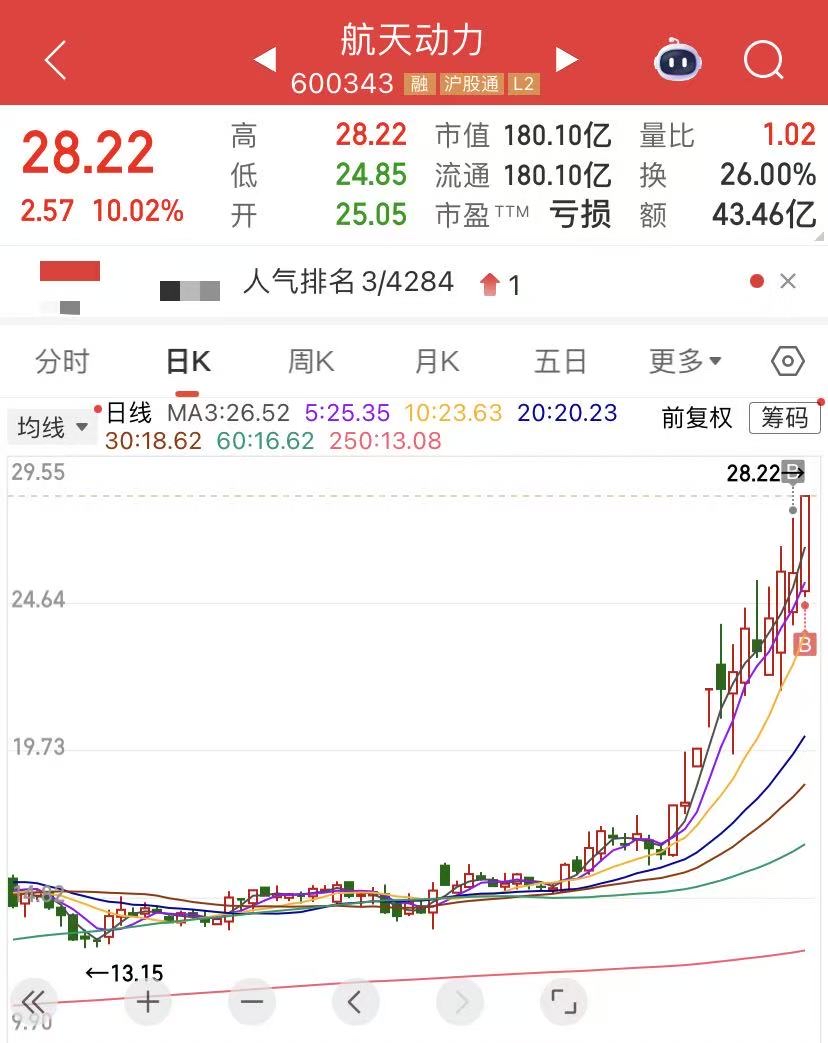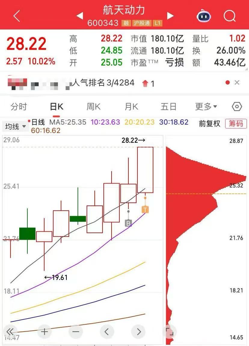 拥抱商业航天主线。分歧低吸,知行合一。板块三大核心都涨停了。航天动力,航天机电,