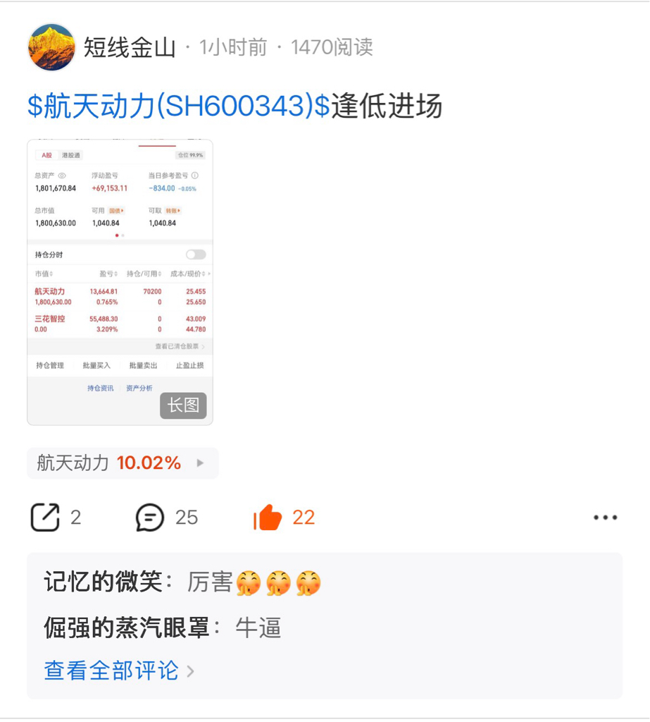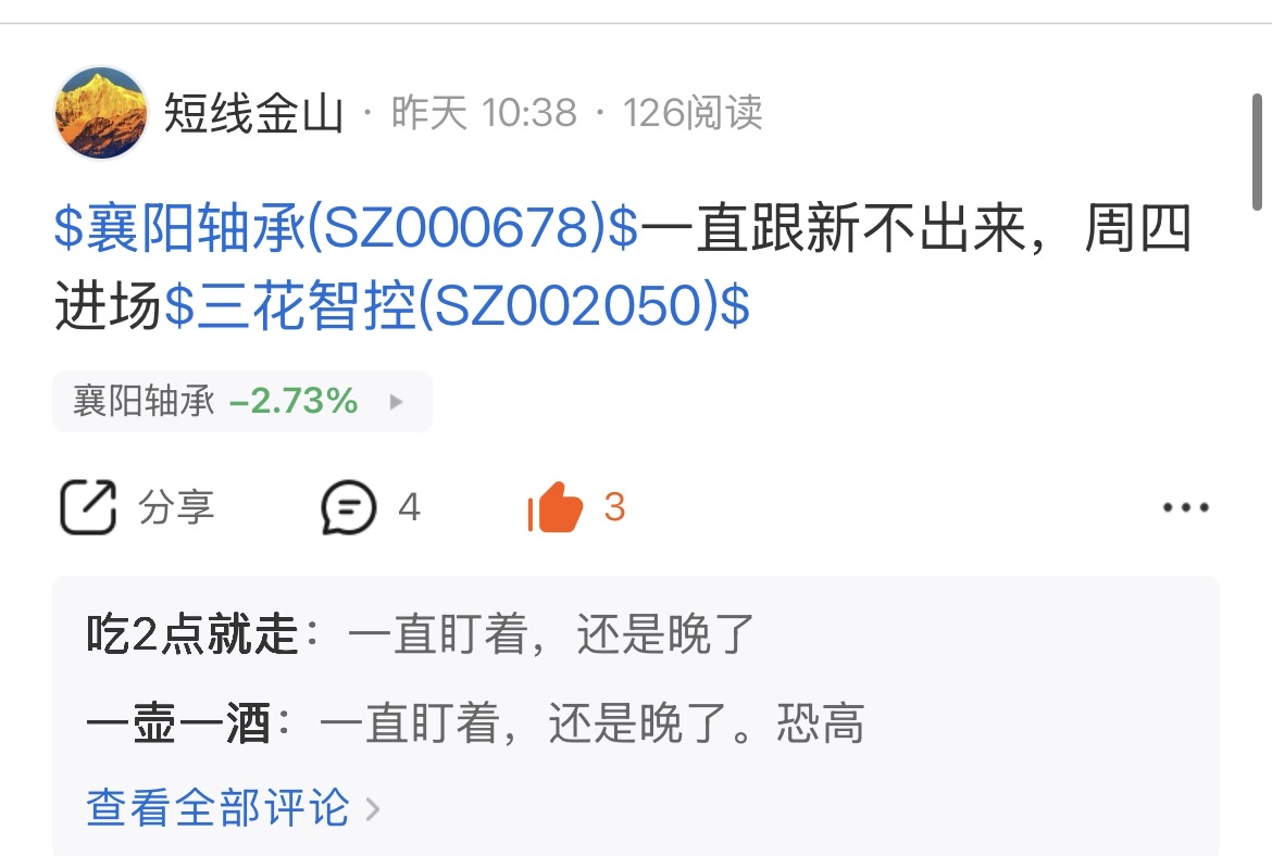 $航天动力(SH600343)$ $三花智控(SZ002050)$ $襄阳轴承(SZ000678)$ 兄弟姐妹们收工啦,愉快的一周结束,再次感谢新老铁粉的支持,后续我们继续努力,共同期待2025年最后一月的跨年狂欢翻倍月吧?相识便是缘,还没给金山点关注的点个关注。