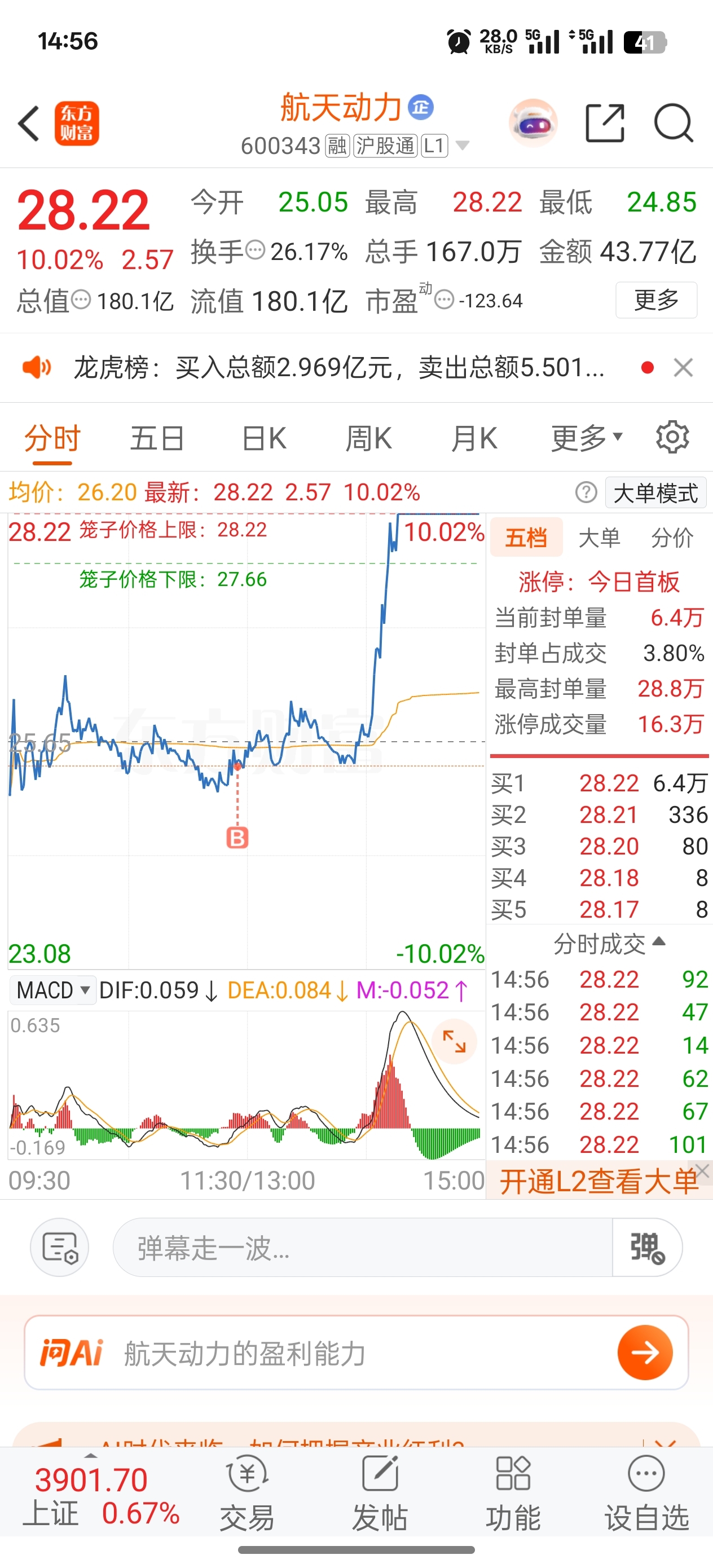 从航天动力自身来说,从涨停启动,再到趋势拉升,现在就是趋势涨停加速的阶段了~
