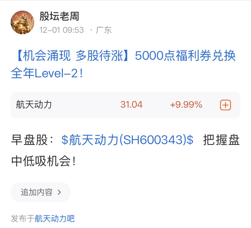 恭喜!恭喜!航天动力今日再度强势涨停涨为什么我选的票成功率这么高,还是有粉丝赚不