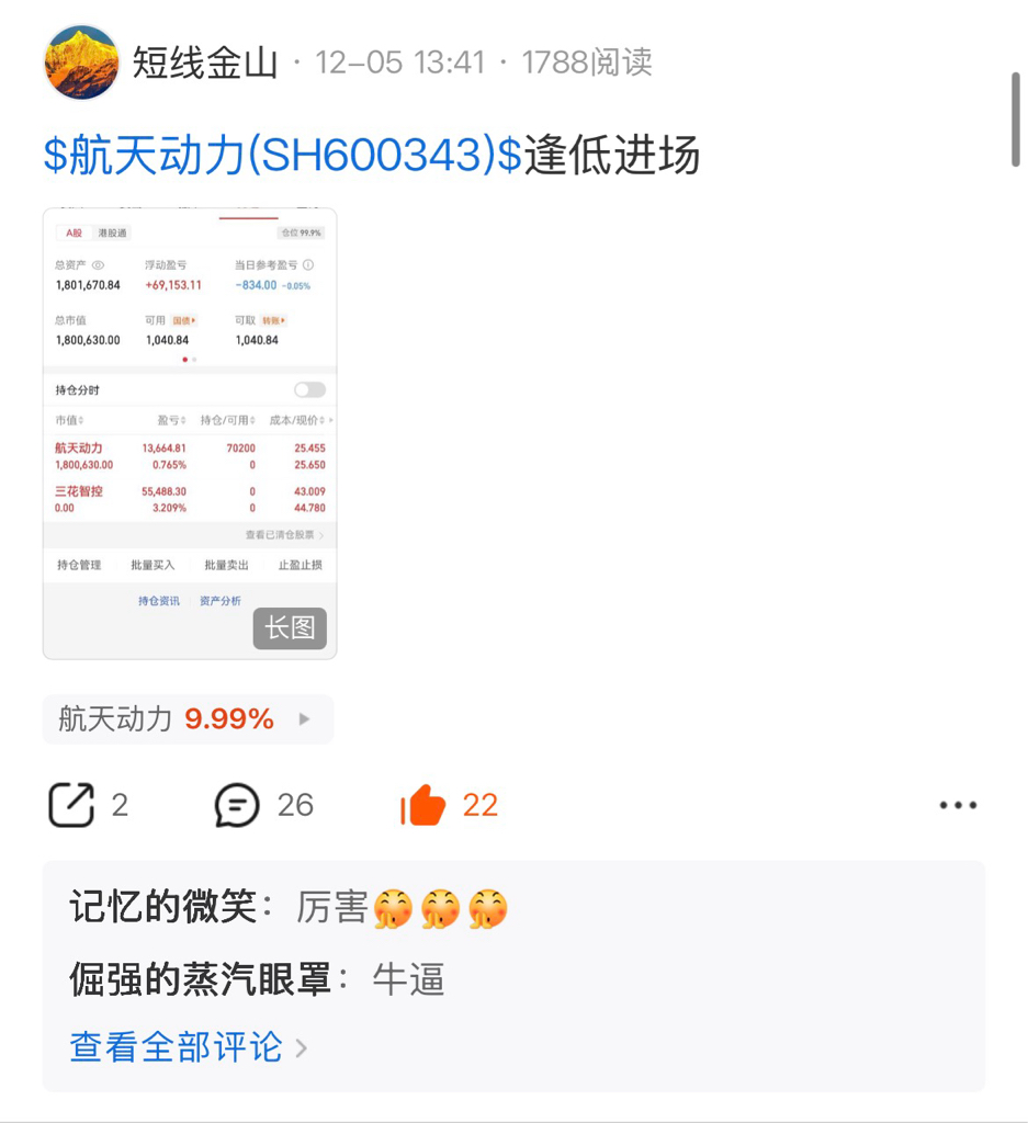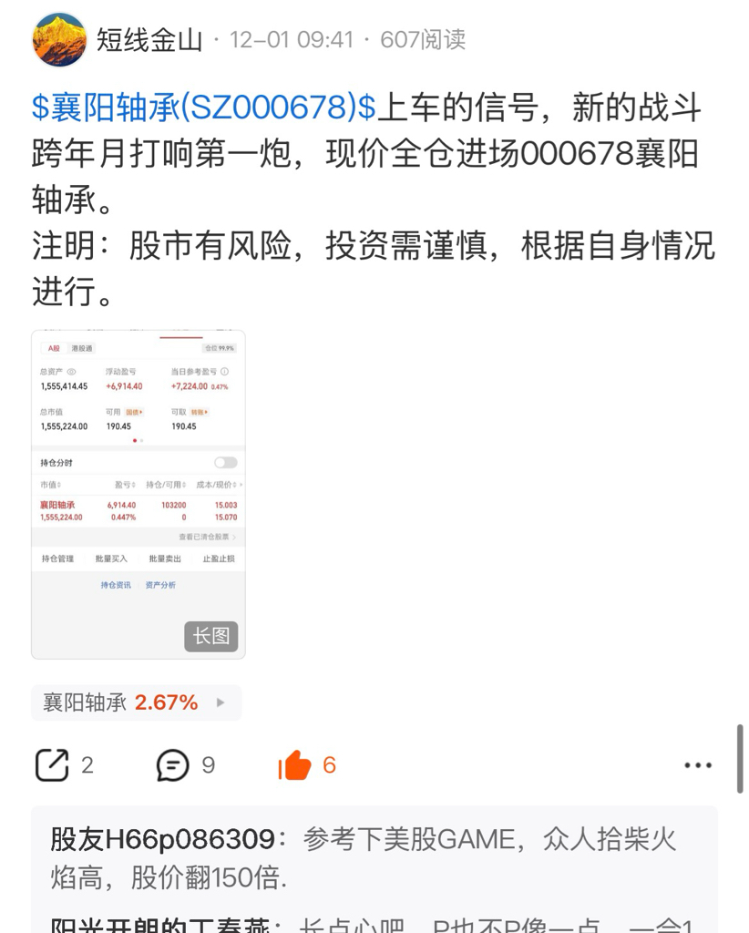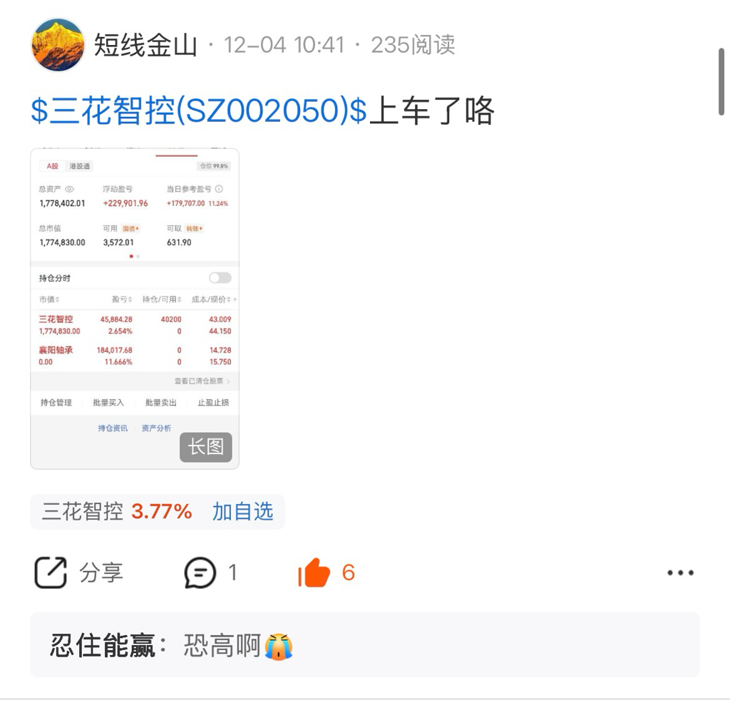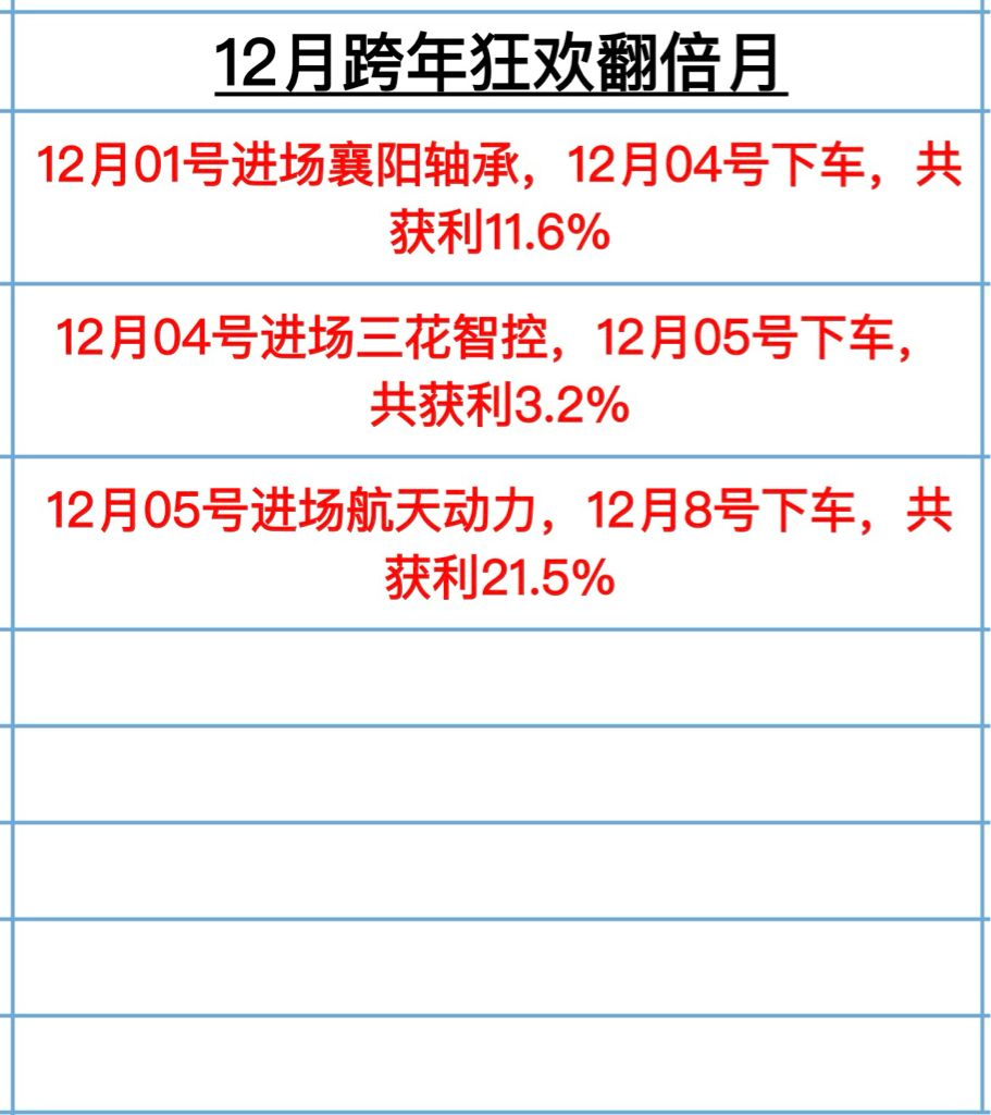 $航天动力(SH600343)$ $襄阳轴承(SZ000678)$ $三花智控(SZ002050)$ 收工啦,上周的标的截止今天就结束啦,即将开启新篇章,上周的总盈利额还不错,达到了36%以上,本周继续加油,共同期待2025年最后一月的跨年狂欢翻倍月吧,还没给金山点关注的点个关注